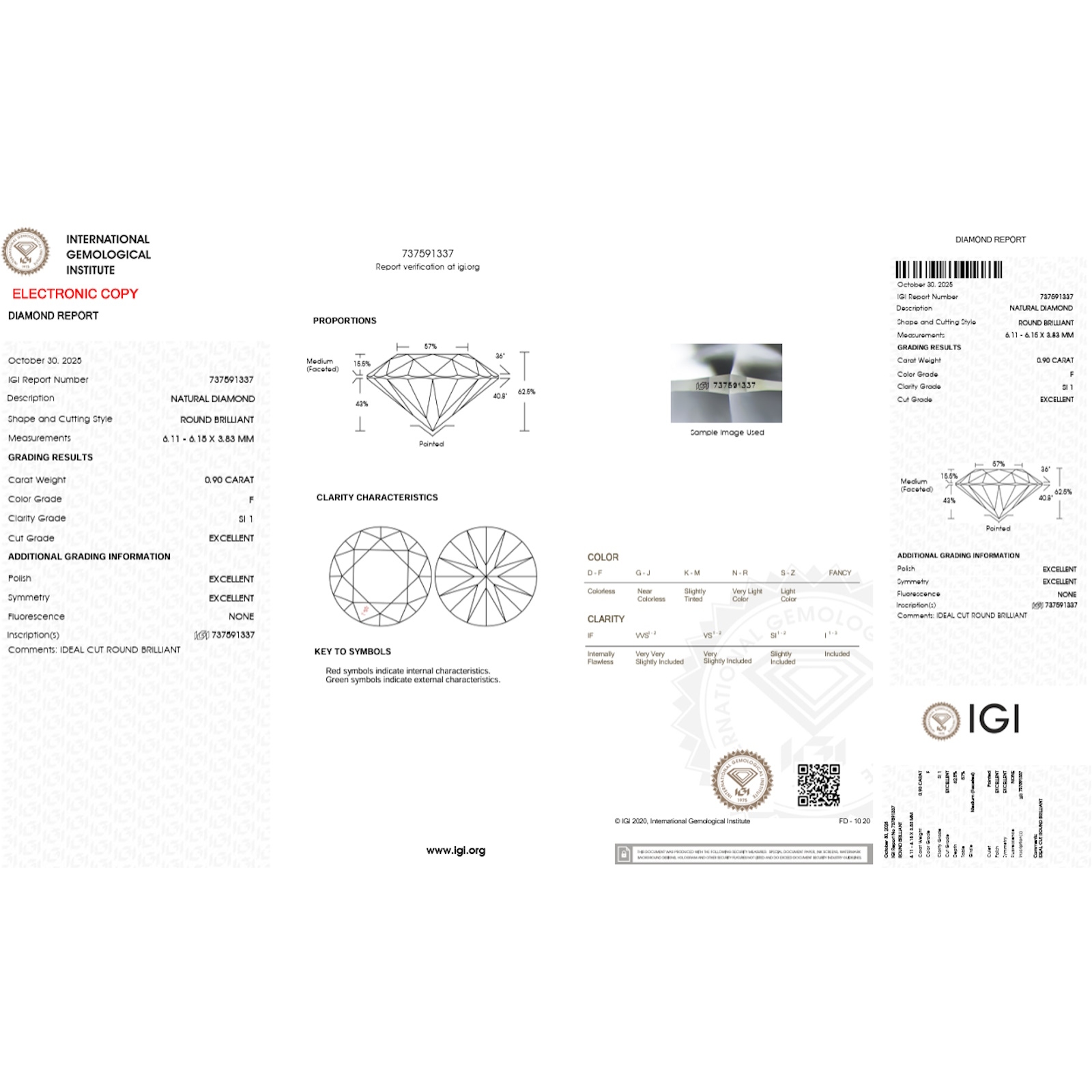 IGI Certified Diamond   CT 0,90  F  SI 1