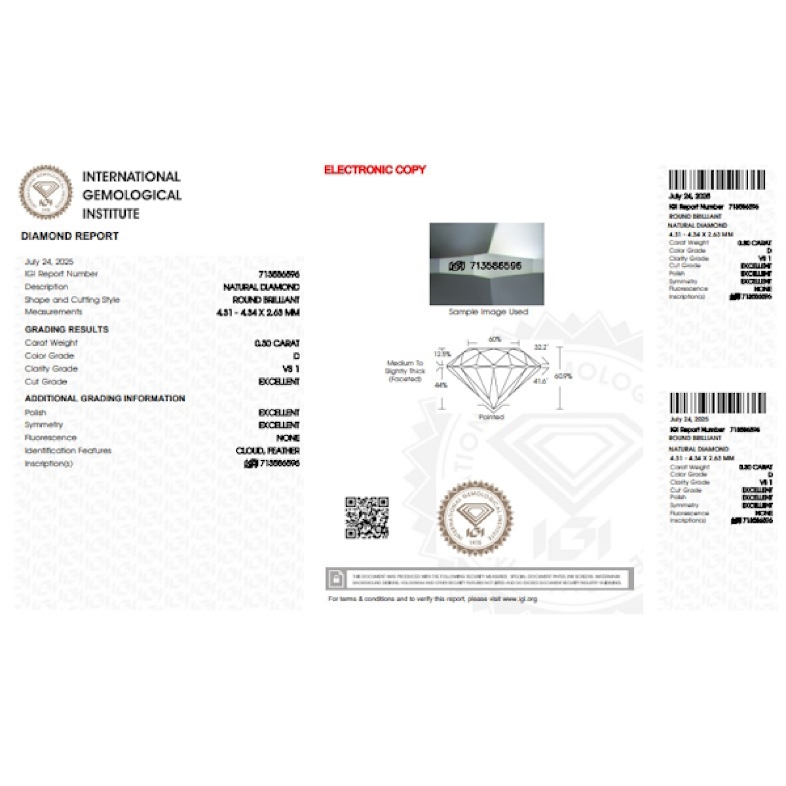 IGI Certified Diamond CT 0,30 D VS 1