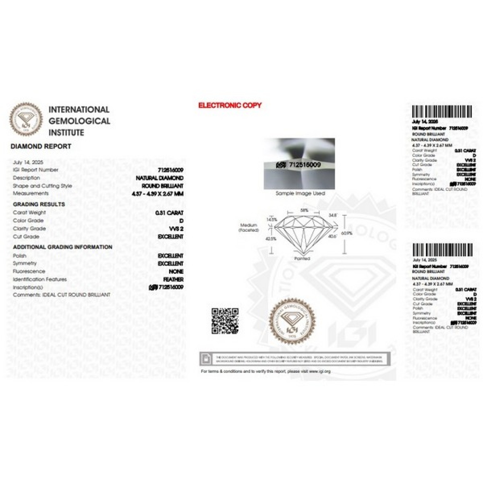 IGI Certified Diamond CT 0,31 D VVS 2