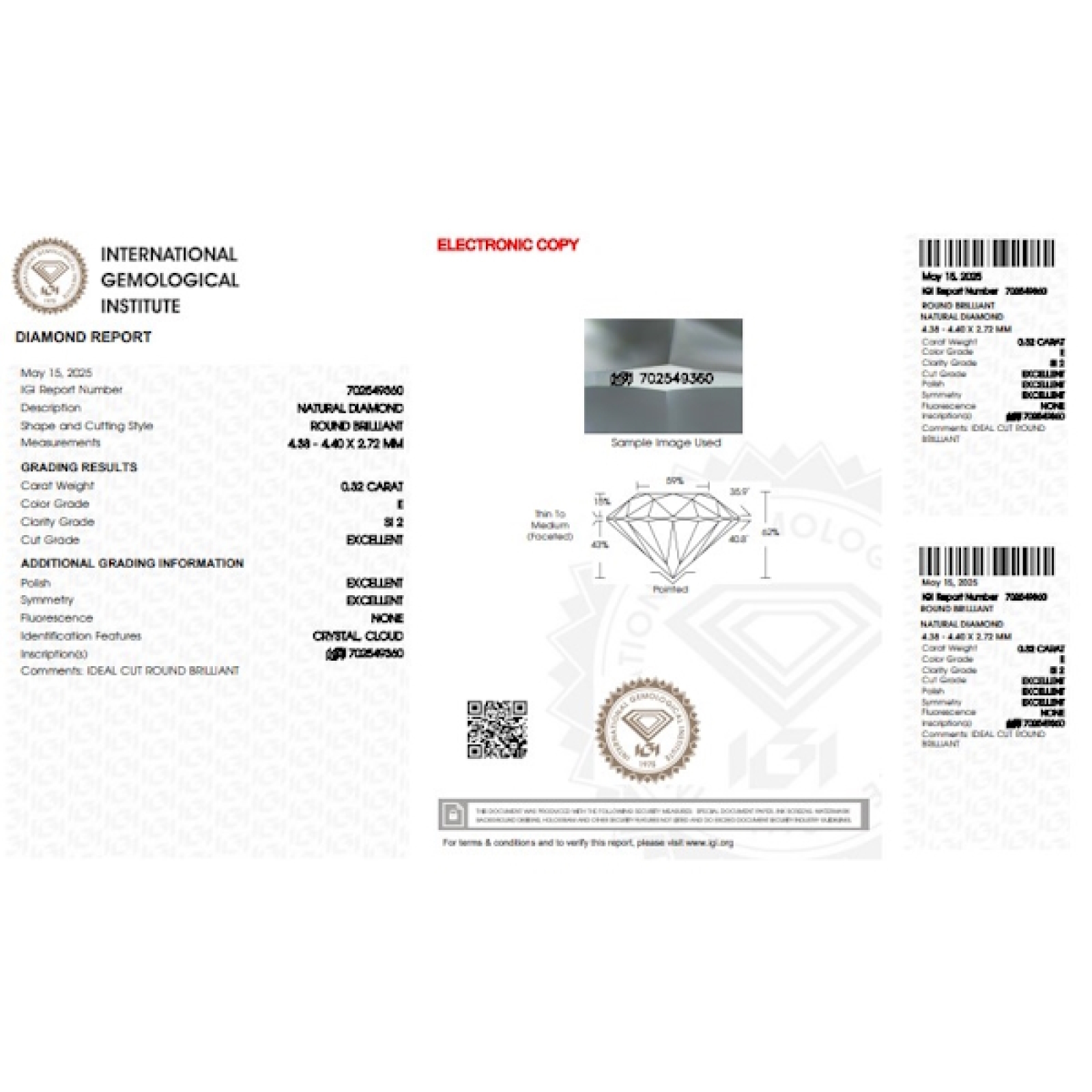 As a jeweller and direct manufacturer, we issue our own certificate for jewellery. This is issued for every piece of jewellery sold online and in our shops and certifies the following characteristics: - Colour, clarity, carat and cut of diamonds (4C). - Cut and carat of coloured gems (rubies, sapphires, aquamarines, topazes, black diamonds, emeralds, tanzanites). - Gold alloy (750 ‰) and weight in grams. The jewellery is sent in an elegant package containing the certificate in the form of a booklet: the format of the certificate has been designed by our designers so that the recipient of the gift can immediately recognise the characteristics of the jewel.