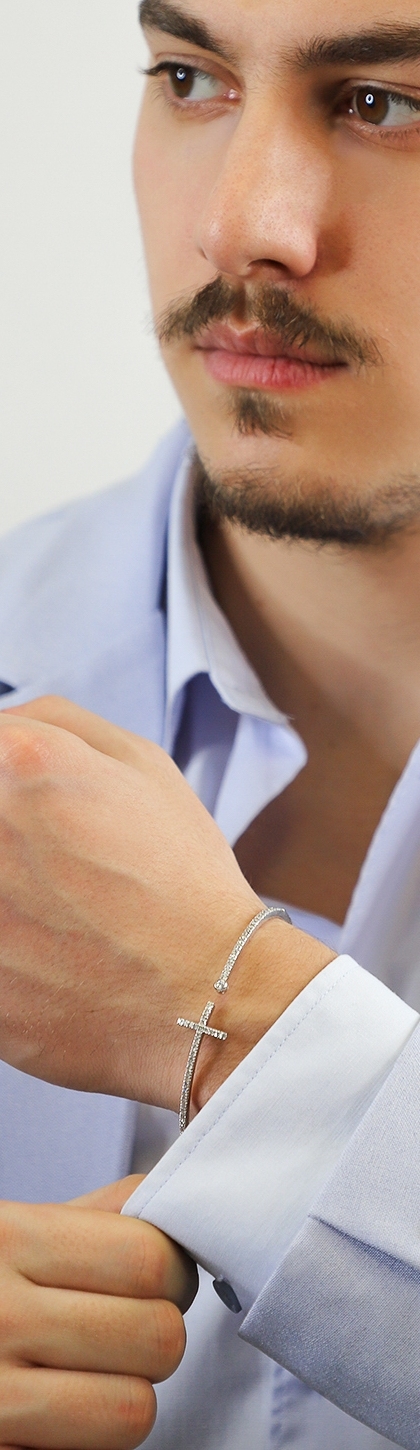 18k white gold spring bracelet with cross in diamonds