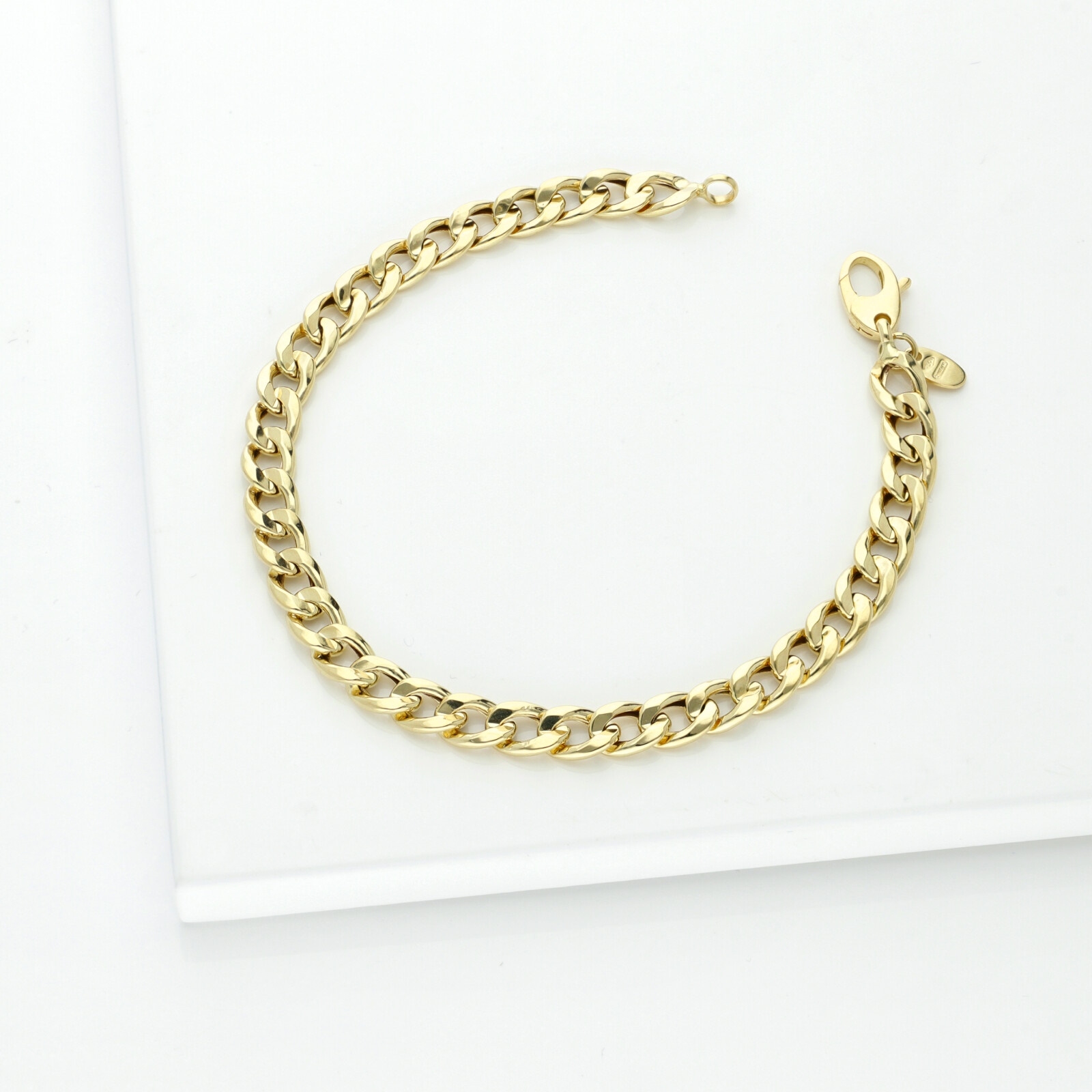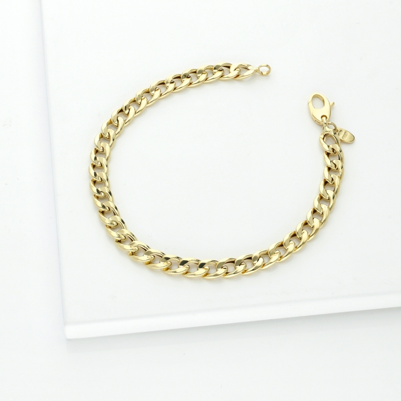 This chain groumette bracelet in 18kt yellow gold features several flat links that make it both comfortable to wear and modern. It's perfect to stack with other dainties bracelets and is ideal to gift for a birthday or a graduation.