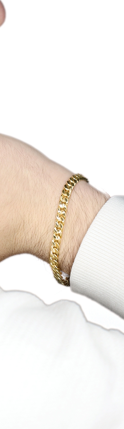 This chain bracelet in 18kt yellow gold features several flat links that make it both comfortable to wear and modern. Its tighter links make it ideal to wear it with other bracelets for a maximalist look. It measures 19cm.