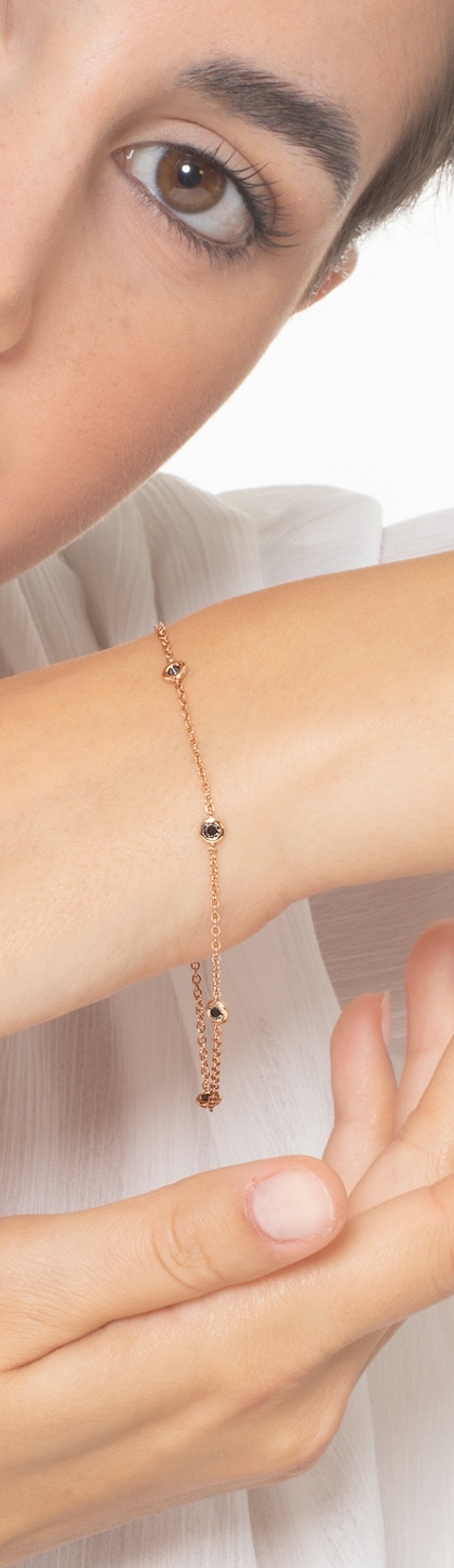 18k rose gold thin bracelet with 5 black round cut diamonds