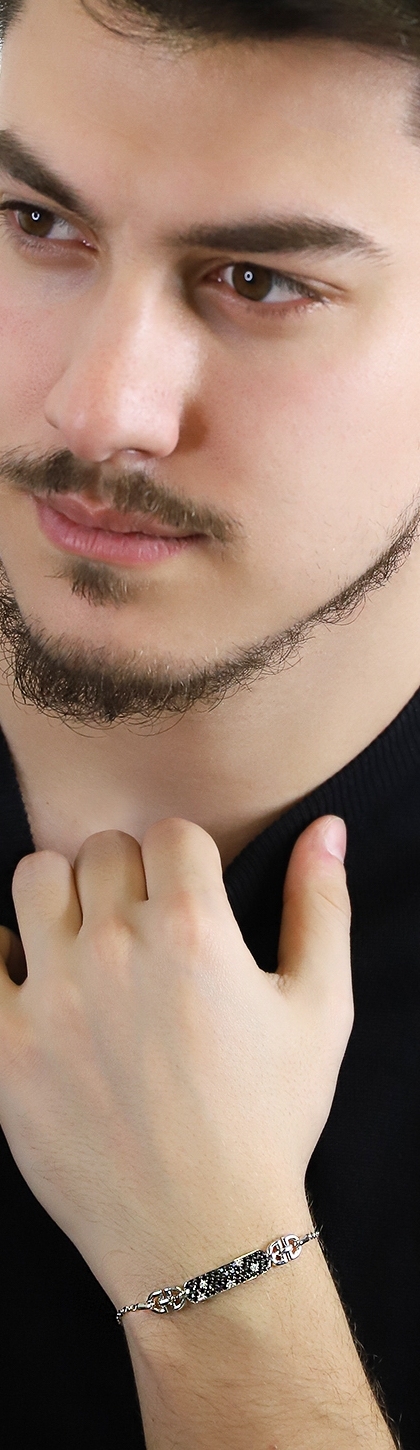 Fancy bracelet in 18k white gold with black and white diamonds