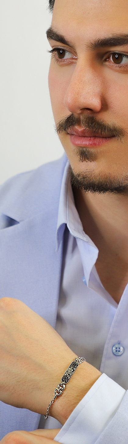 Fancy bracelet in 18k white gold with black diamonds pavé