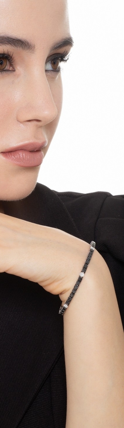 18k white gold tennis bracelet with black and white diamonds