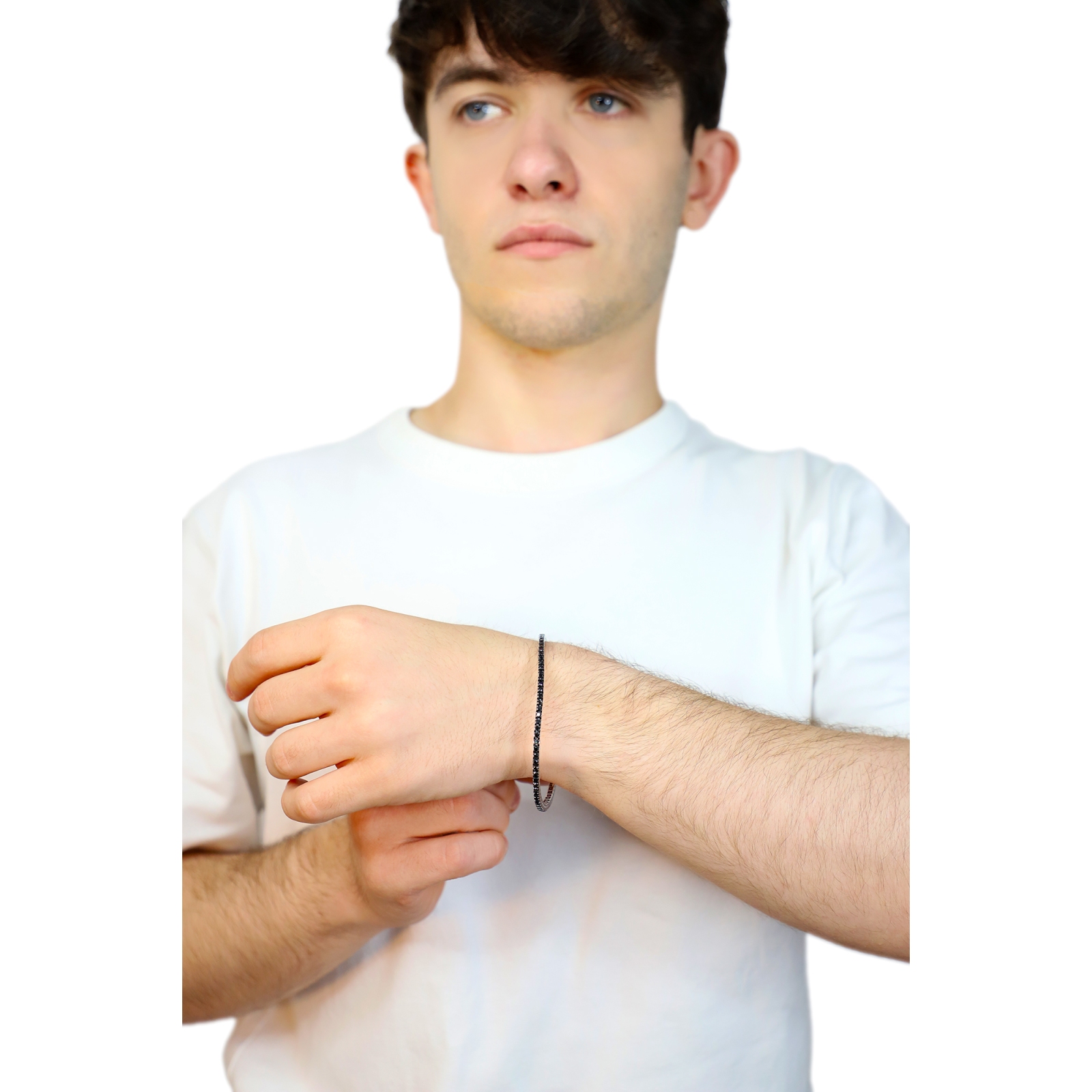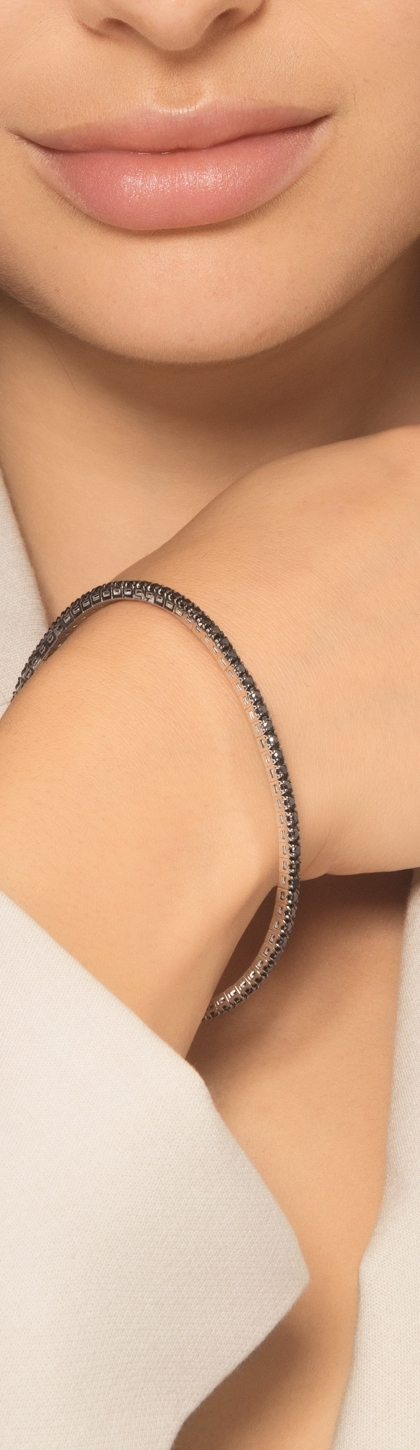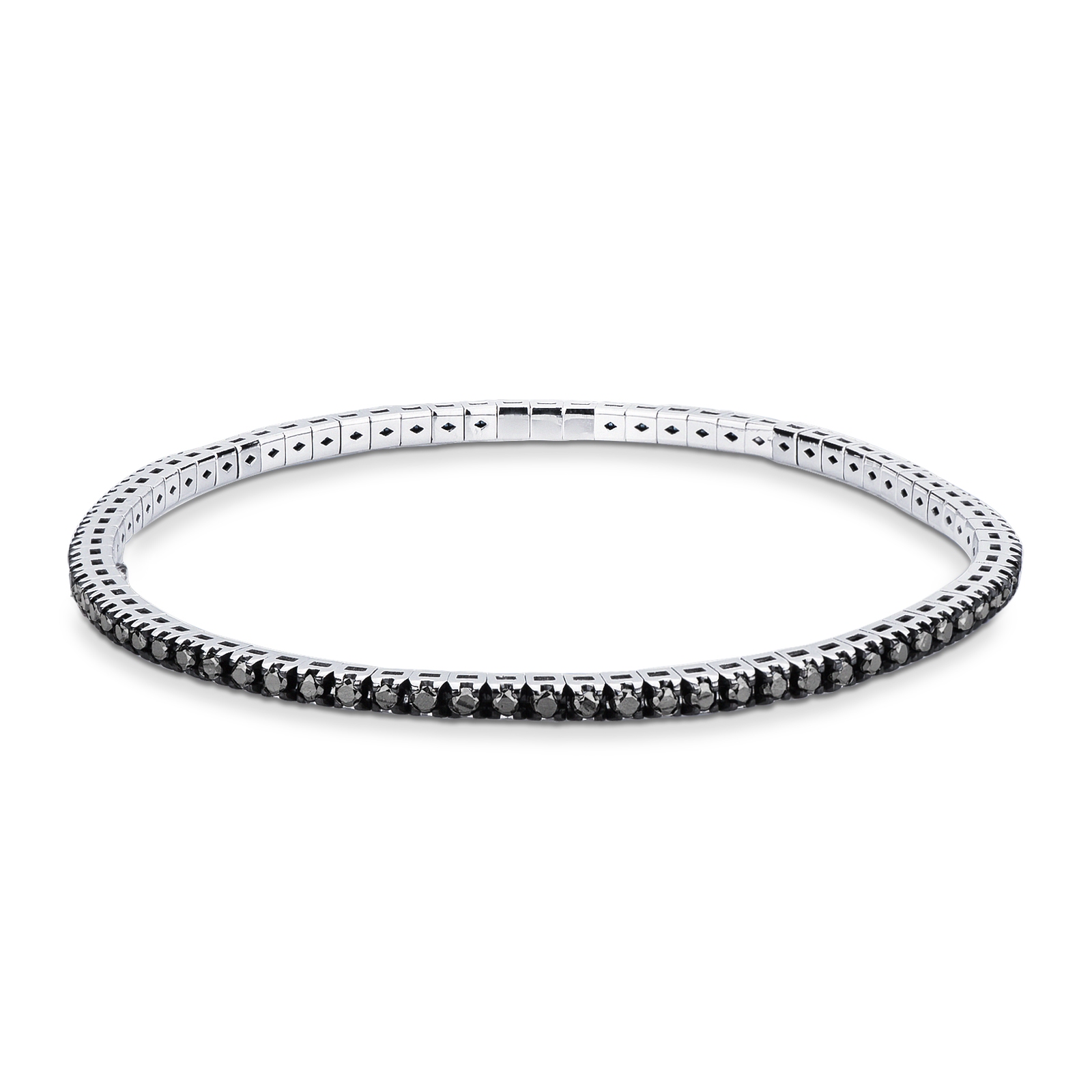 Elastic bracelet tennis in 18k white gold with black diamonds