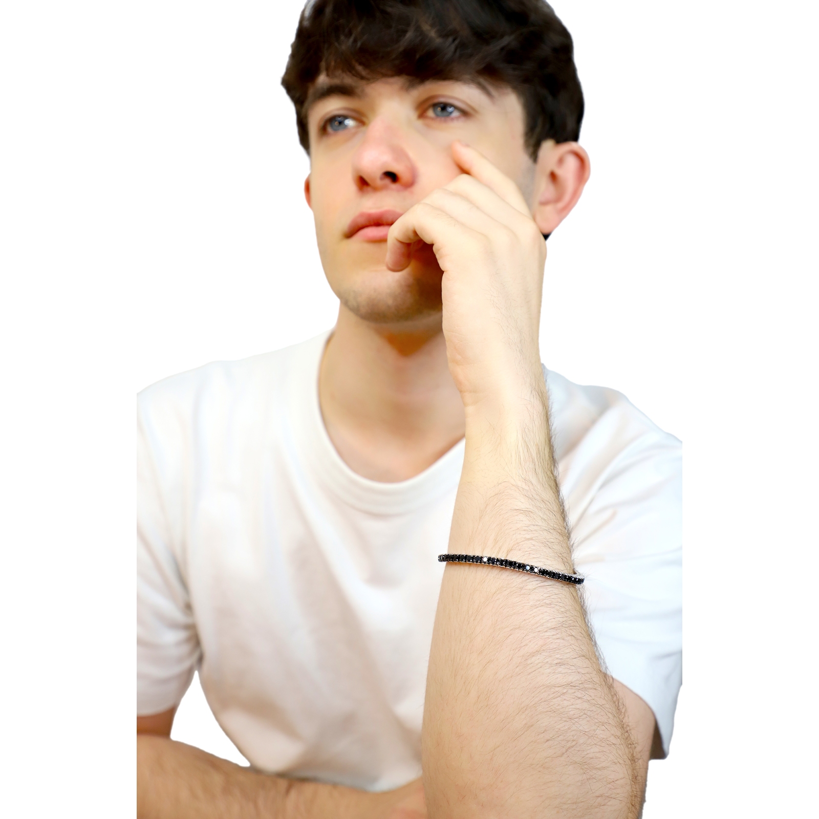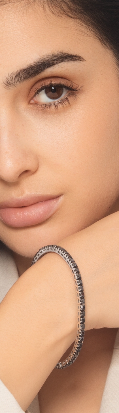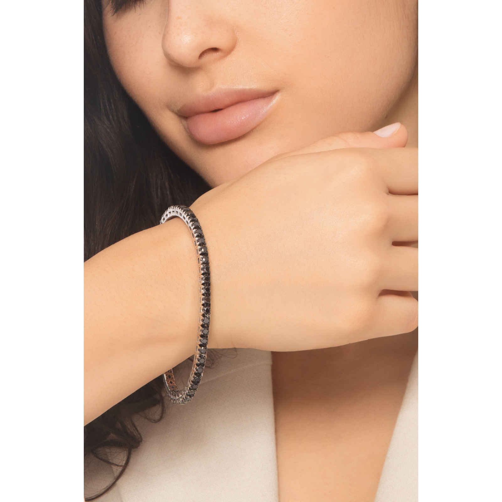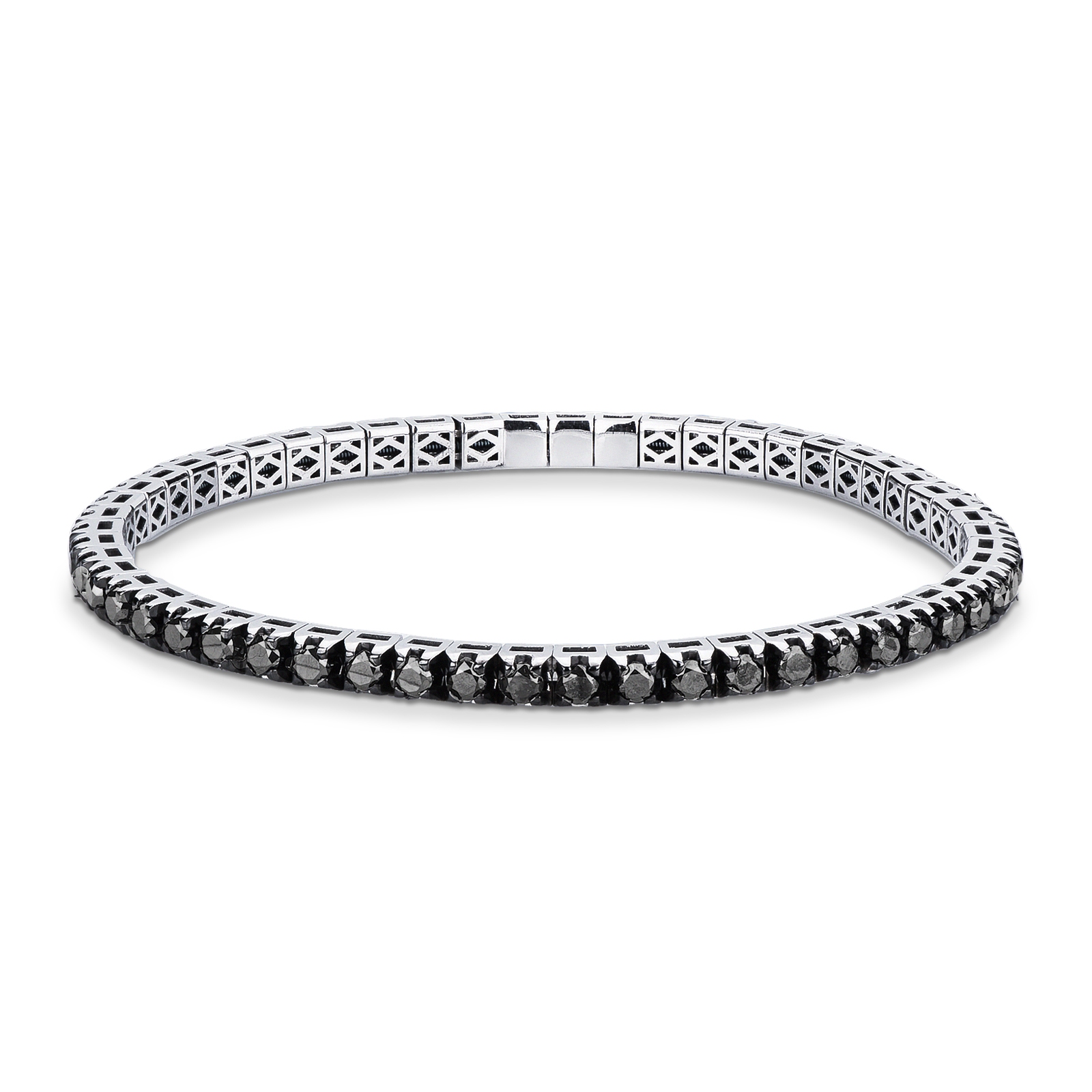 Elastic tennis bracelet with black diamonds in 750 white gold