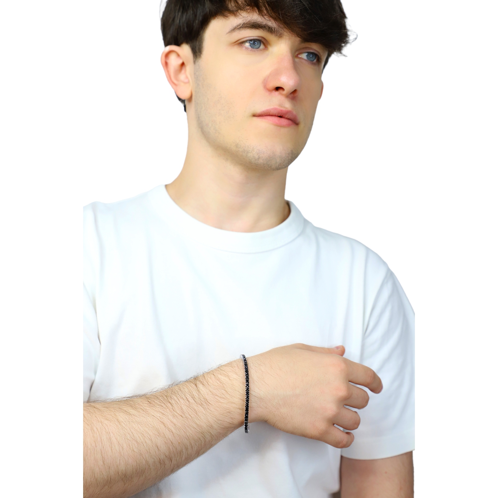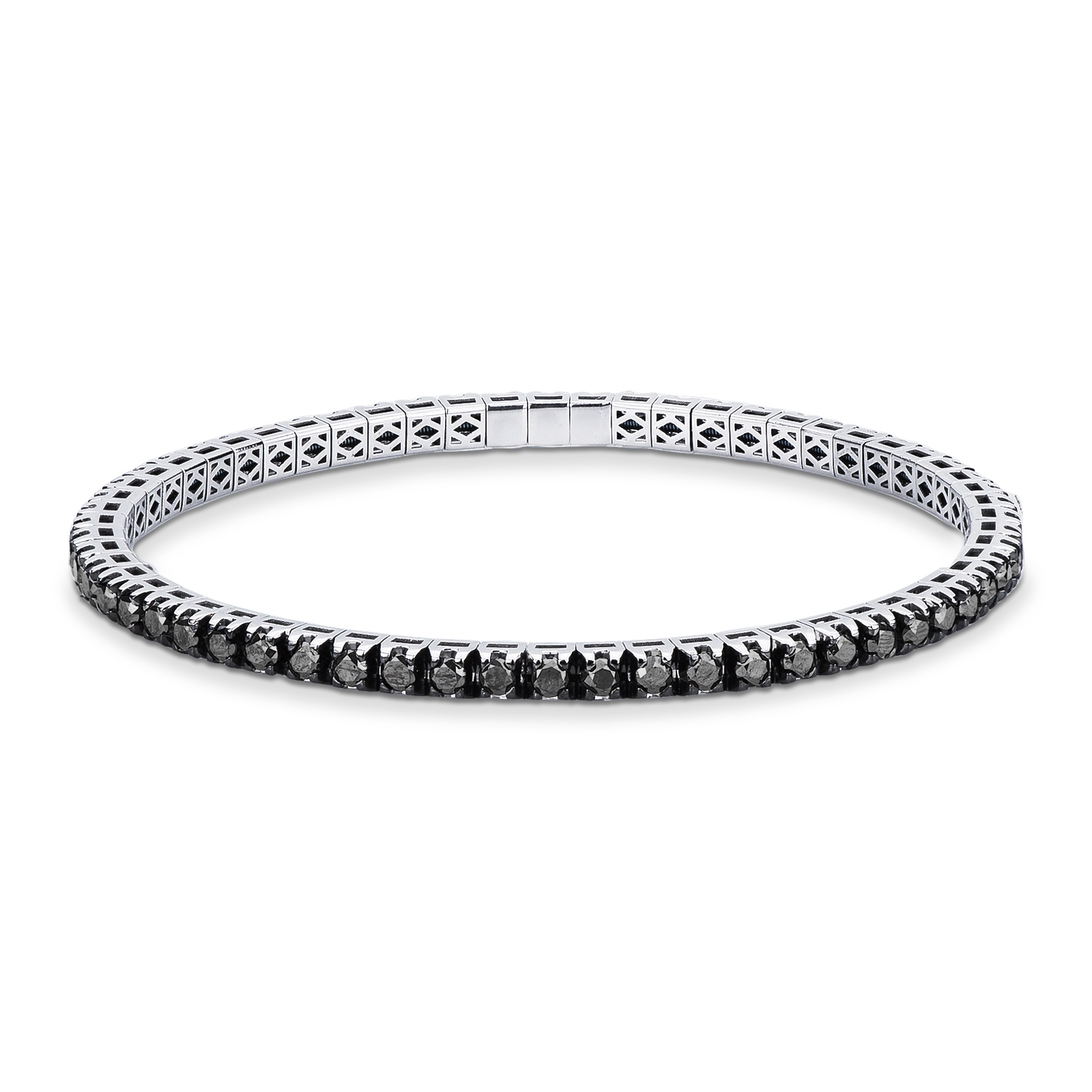 Tennis bracelet elastic in 750 white gold with black diamonds