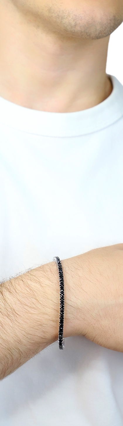 Tennis bracelet elastic in 750 white gold with black diamonds