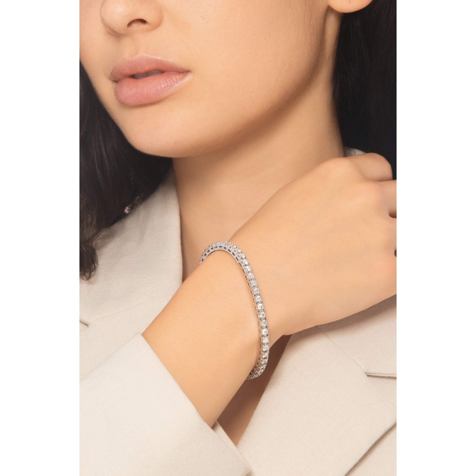 Tennis bracelet elastic in white gold 18k with diamonds
