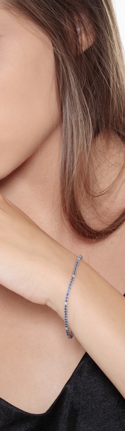 Tennis bracelet in white gold 750 with blue sapphires and diamonds