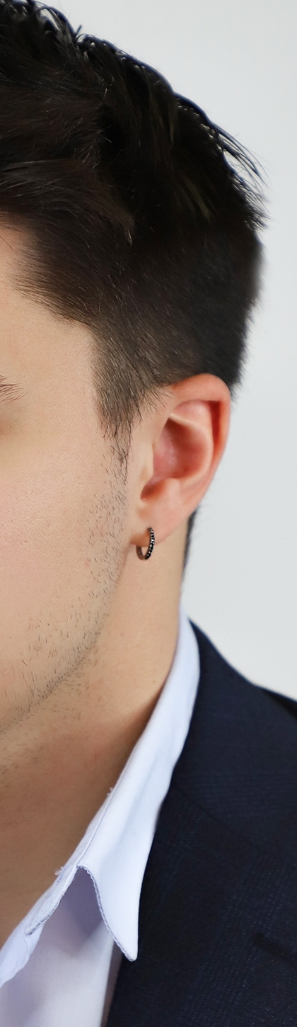 White gold 18k little single earring with black diamonds