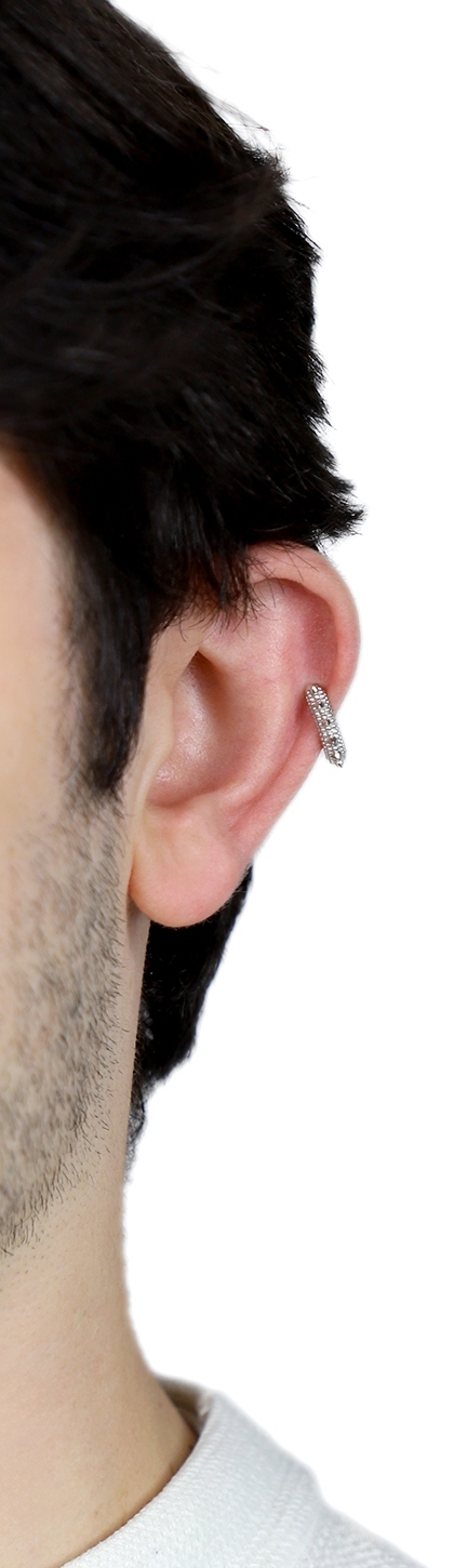 Versatile and stylish, this cuff earring wraps around the ear without the need of a real piercing. It is crafted in shiny and luxurious 18kt white gold and can be worn either on the upper or the middle part of the ear. It can also be mixed with other cuffs or earrings for an eclectic look. The decorative studs add a touch of modernity to the plain 18kt gold.