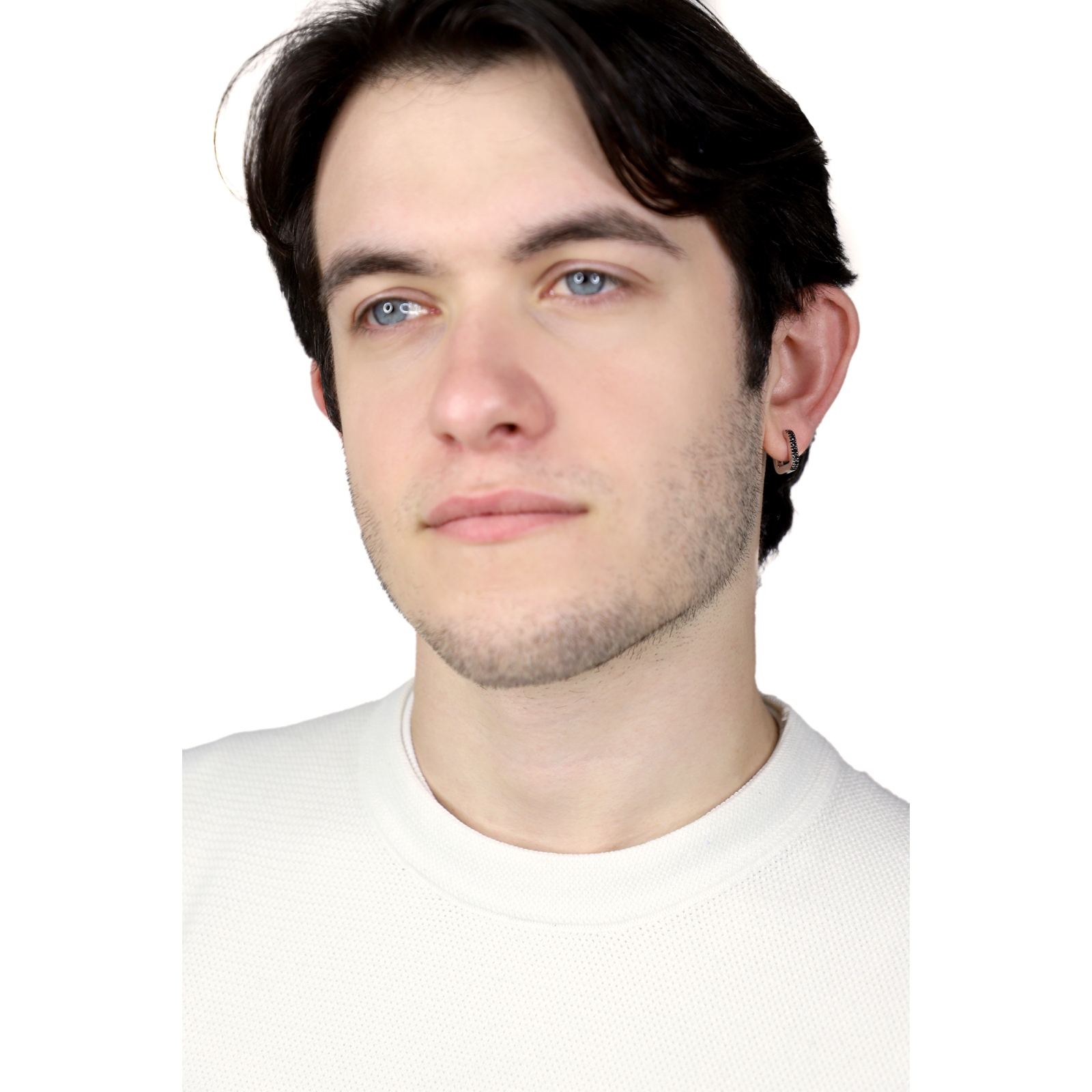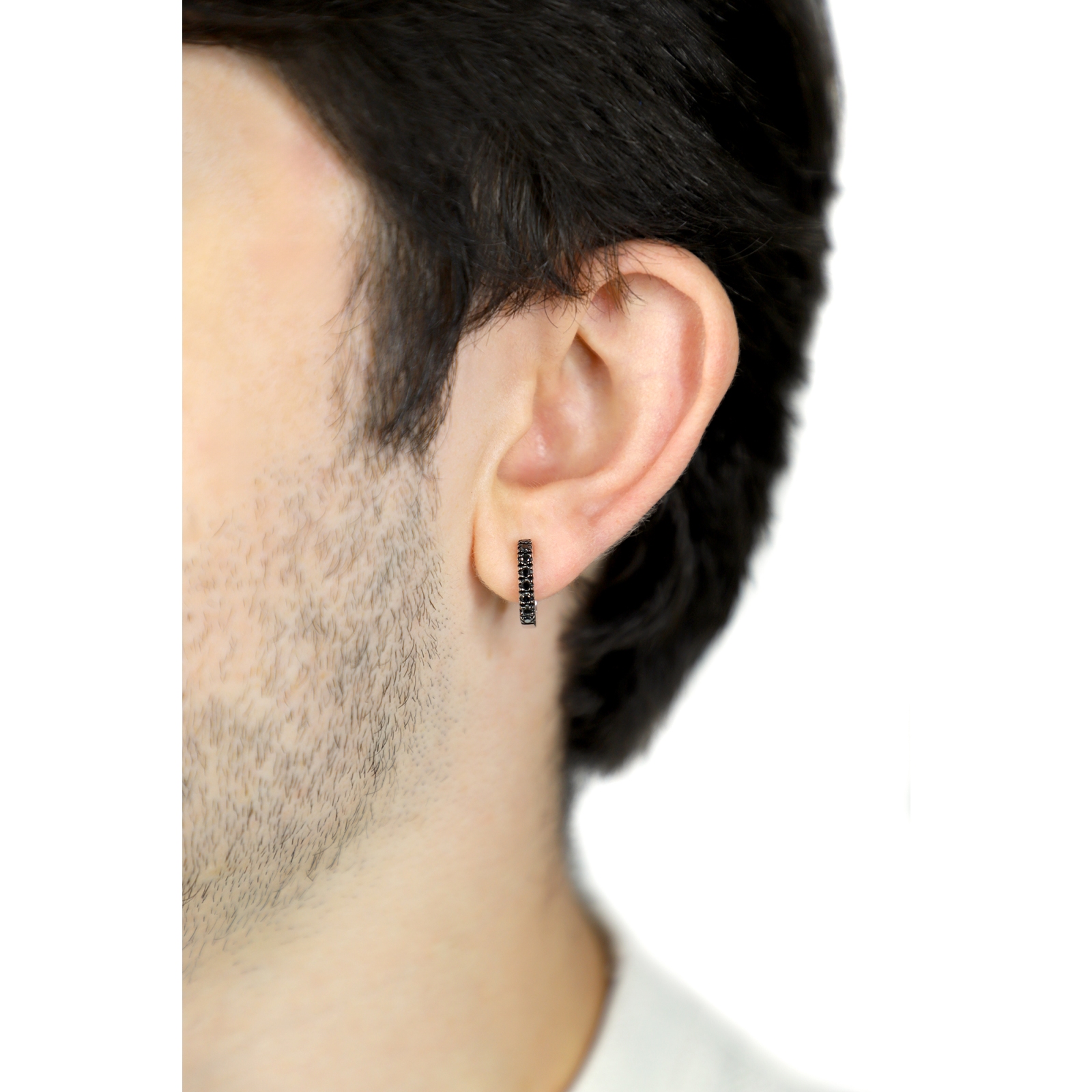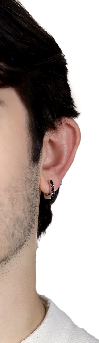 This single earring features a U-shaped design, providing enhanced comfort for everyday wear, including while sleeping. It is crafted in 18kt white gold and it features a this row of black diamonds with blackened prongs. This stylistic choice brings out the depth of the black diamonds’ color, highlighting their striking appeal.