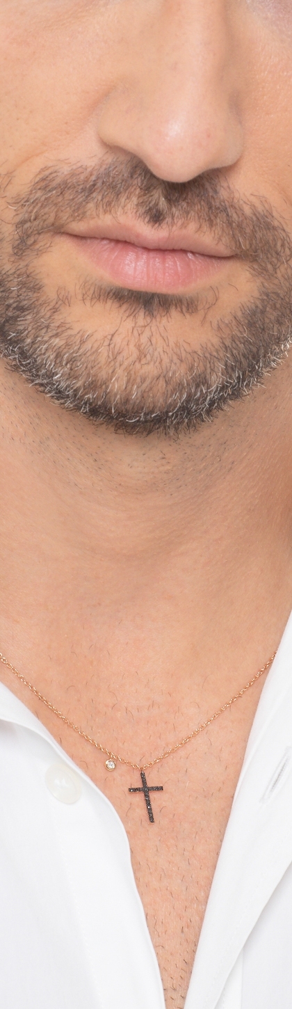 18k rose gold necklace with cross in black diamonds