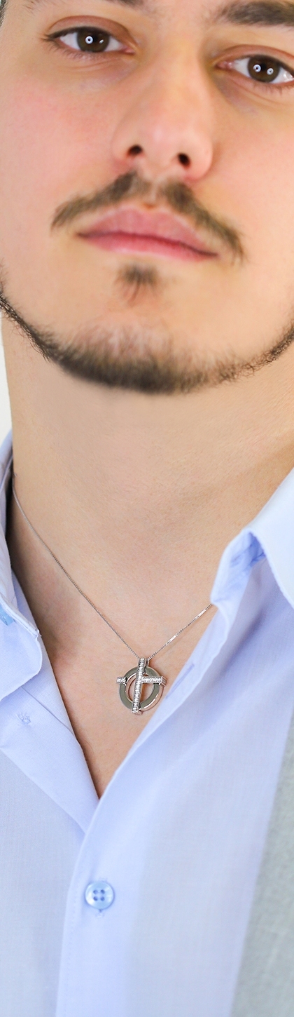 Necklace in white gold 18k with circle and cross pendant with diamonds brilliant cut, H color, Vs clarity.