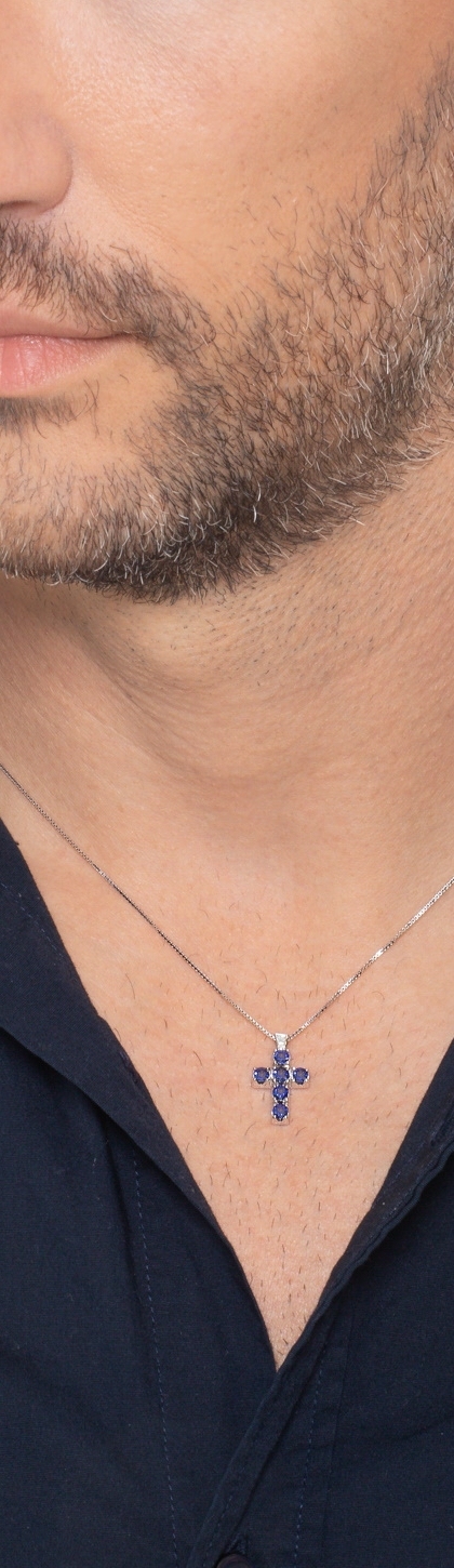 Cross pendant blue sapphires