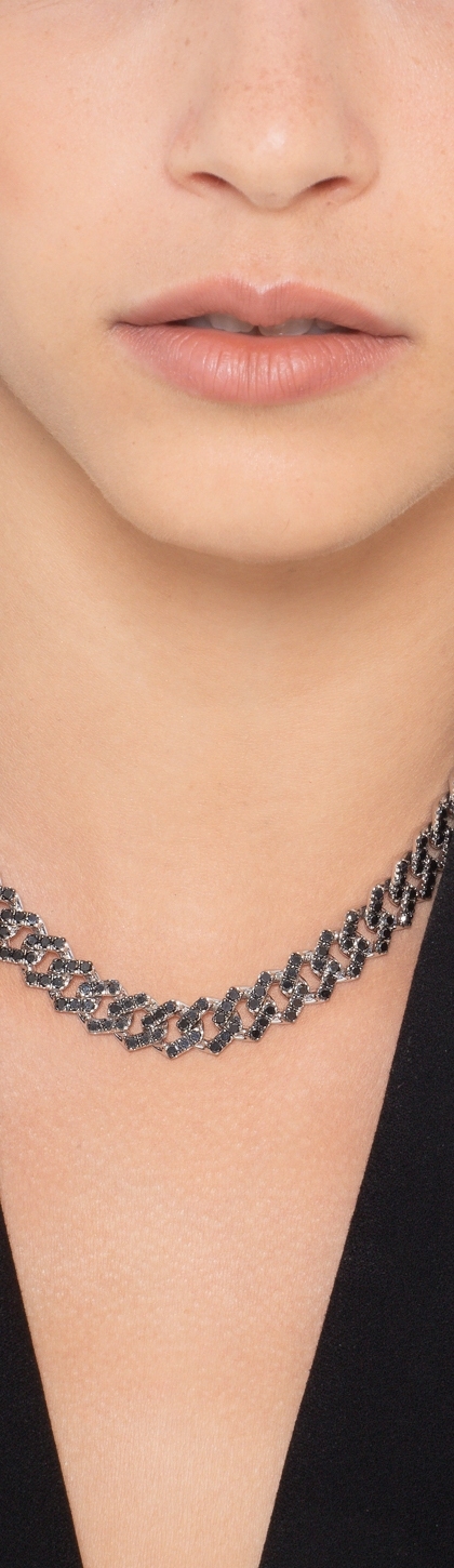 Cuban chain in 18k white gold with black diamonds