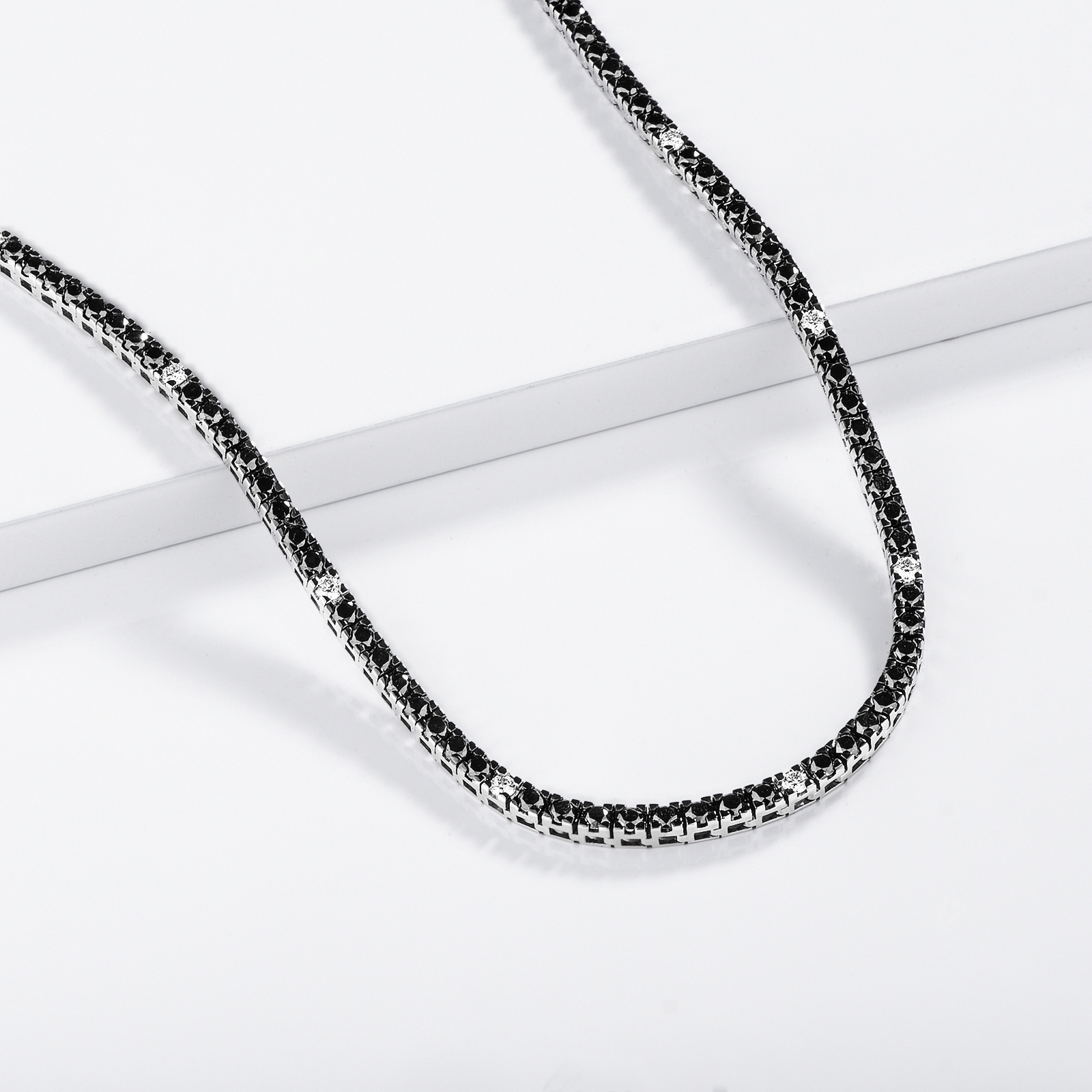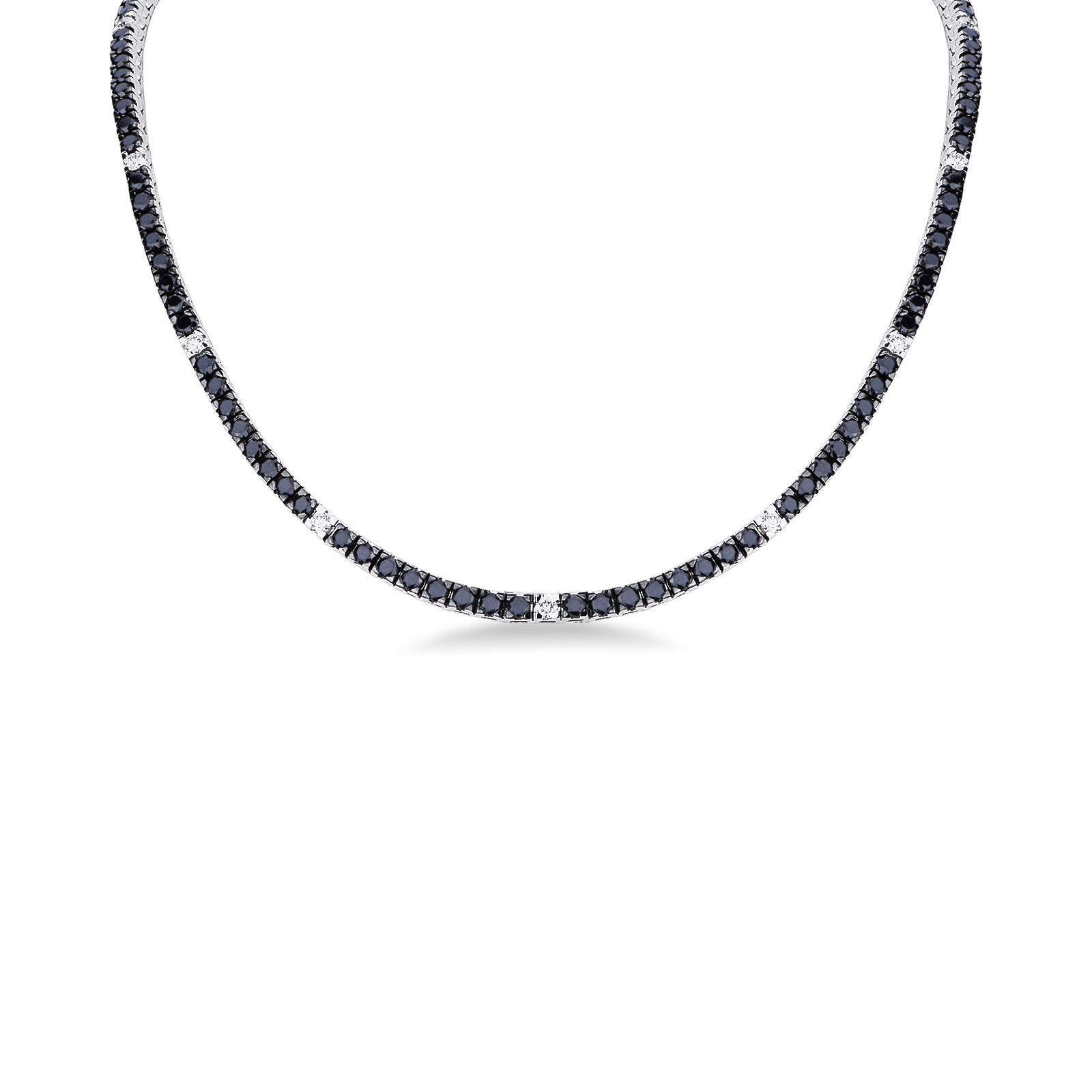 Black and white diamond tennis necklace in 18kt white gold