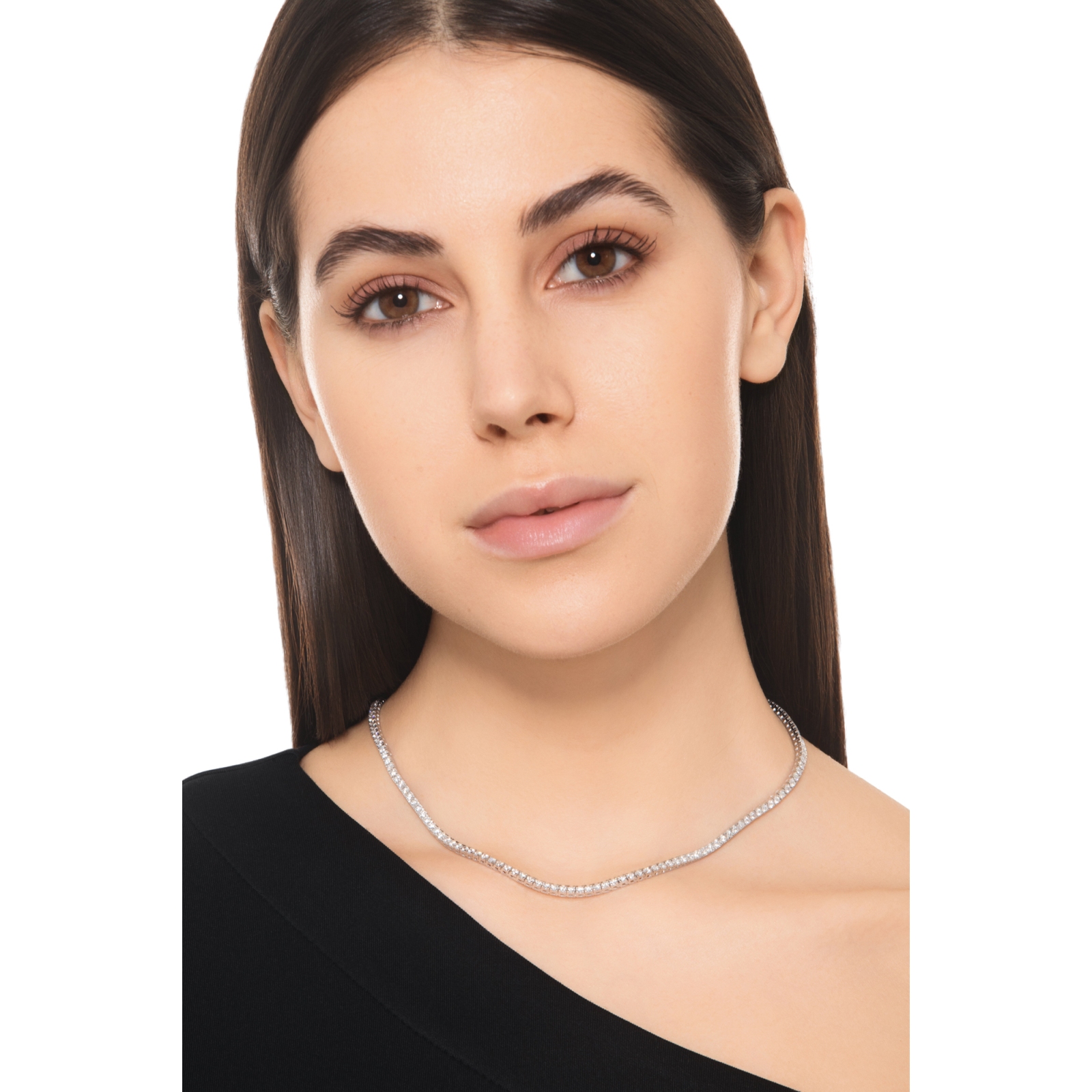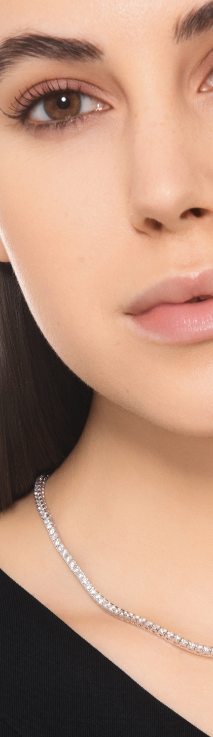 A clean-line tennis necklace featuring brilliant-cut white diamonds: a timeless piece where the diamonds are the protagonists. It is crafted in 18kt solid white gold and every diamond is set by hand by our skilled artisans.