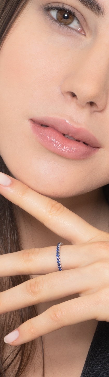 As the name suggests, this eternity ring represents eternal love and it is characterized by a full circle of brilliant-cut blue sapphires set in 18kt white gold.
