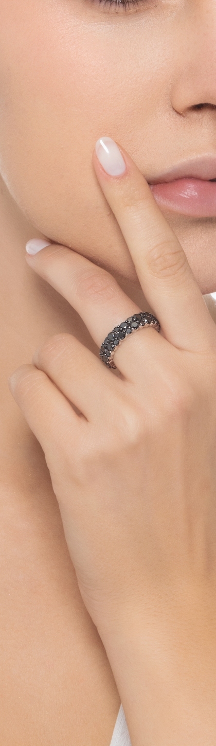 As the name suggests, this ring represents eternal love and it is characterized by two rows of black diamonds. Crafted in 18kt white gold, it is set with black diamonds which embody a dramatic allure that appeals to those with bold, unconventional taste.