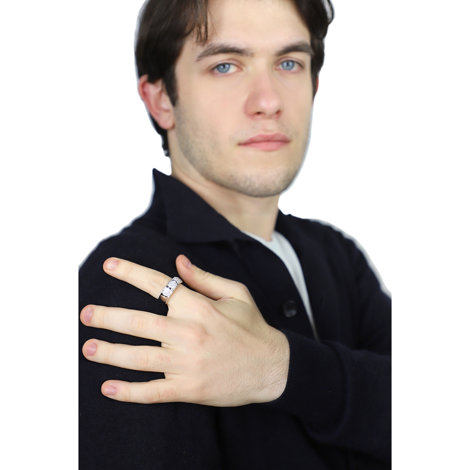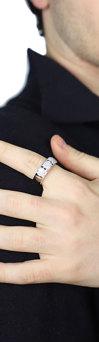18k white gold men band ring with diamonds