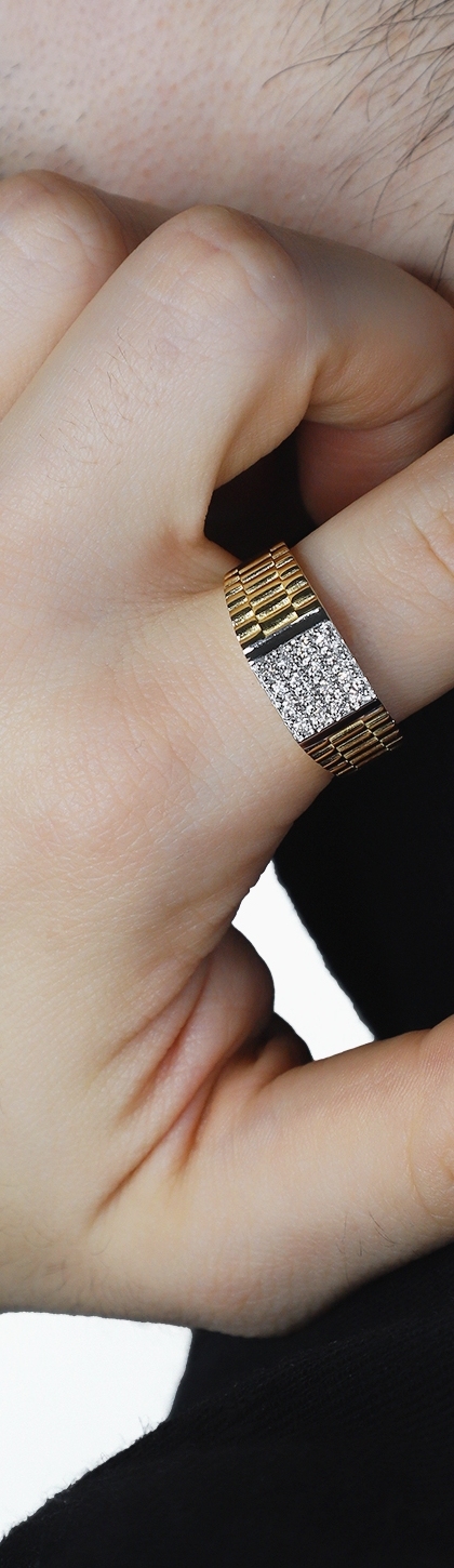 Band men ring in white and yellow gold 18k with pavè diamonds