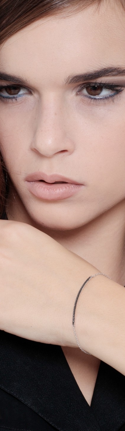 White gold 18k bracelet with black diamonds bar burnished tips
