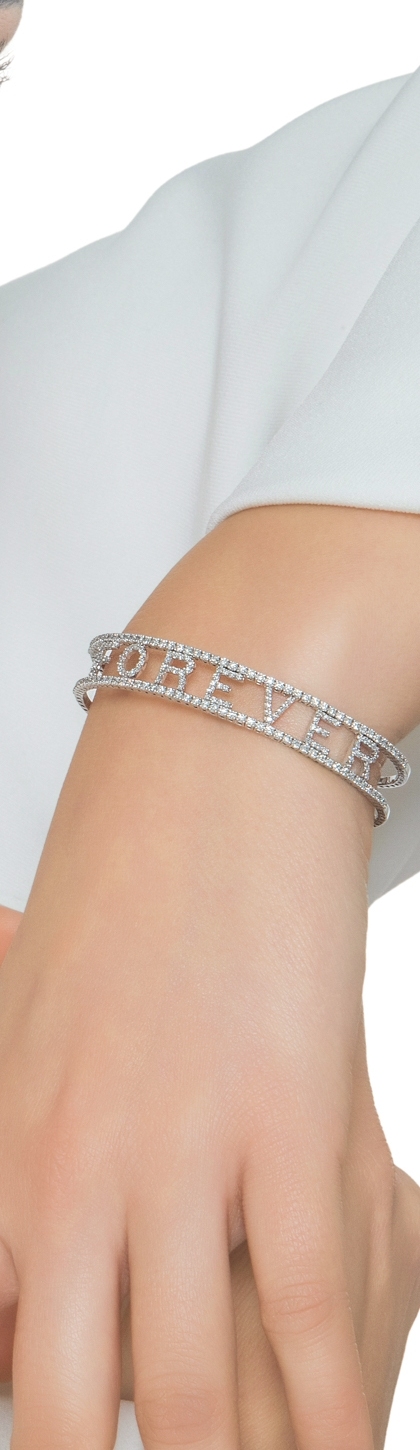 18k white gold rigid bracelet with letters FOREVER in diamonds