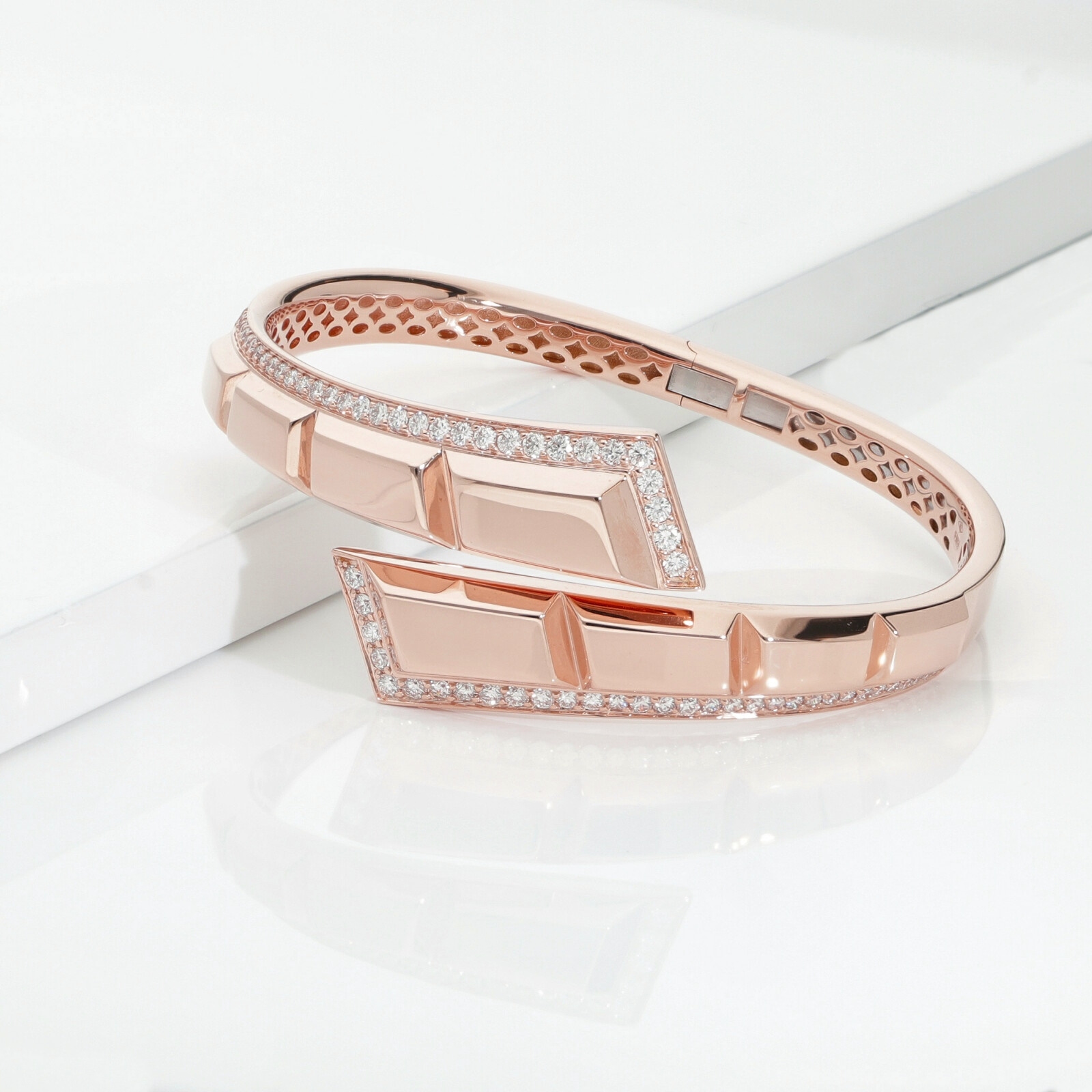 Bypass semi-rigid bracelet with diamonds in 18kt rose gold