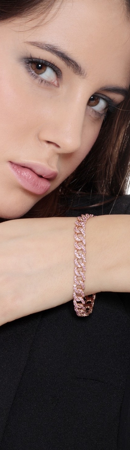 Cuban link bracelet in 18k rose gold with pink sapphires