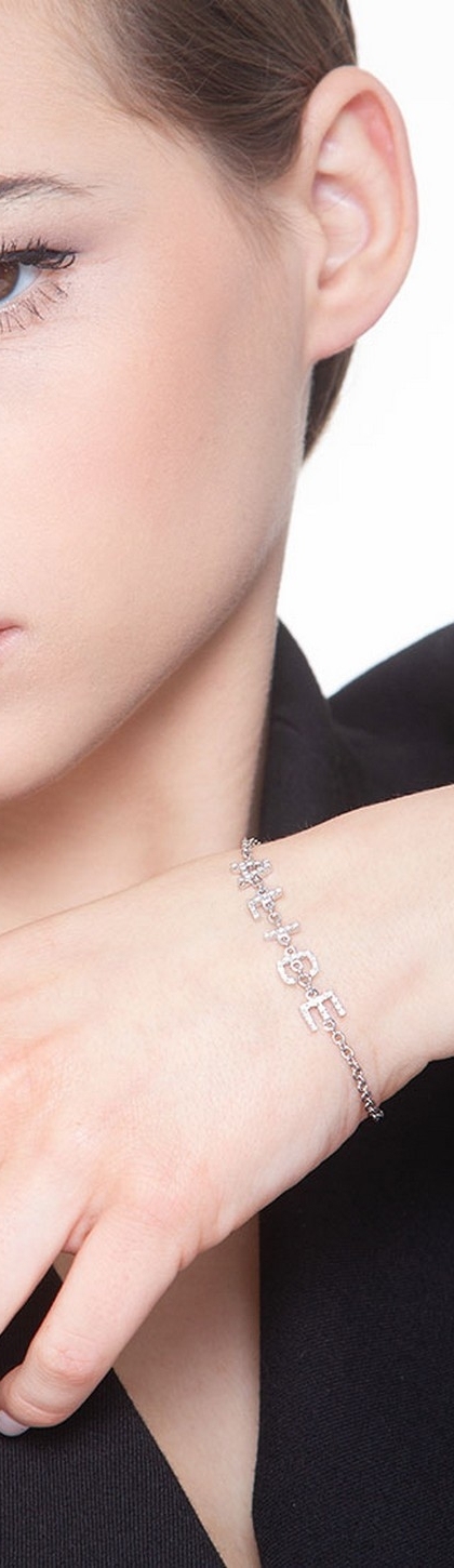 Bracelet with letters HAPPY in white gold and diamonds
