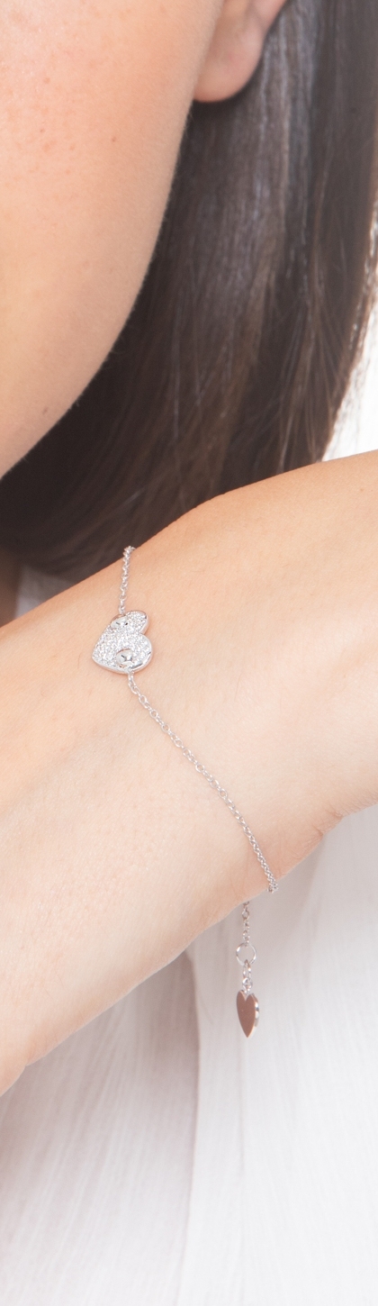 Heart pavè diamonds bracelet in white gold 750