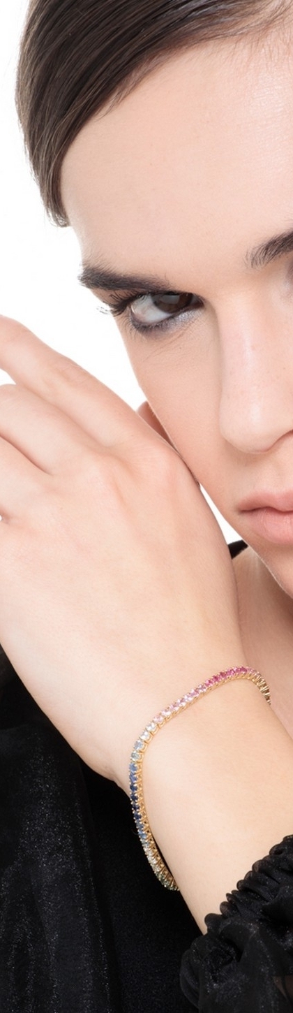 Multicolor sapphires tennis bracelet in yellow gold 18k