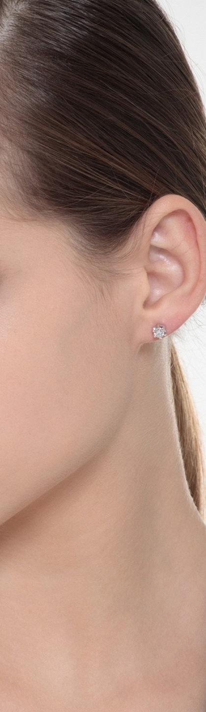 6 prongs diamond stud earrings in white gold 18k, ct 0,50