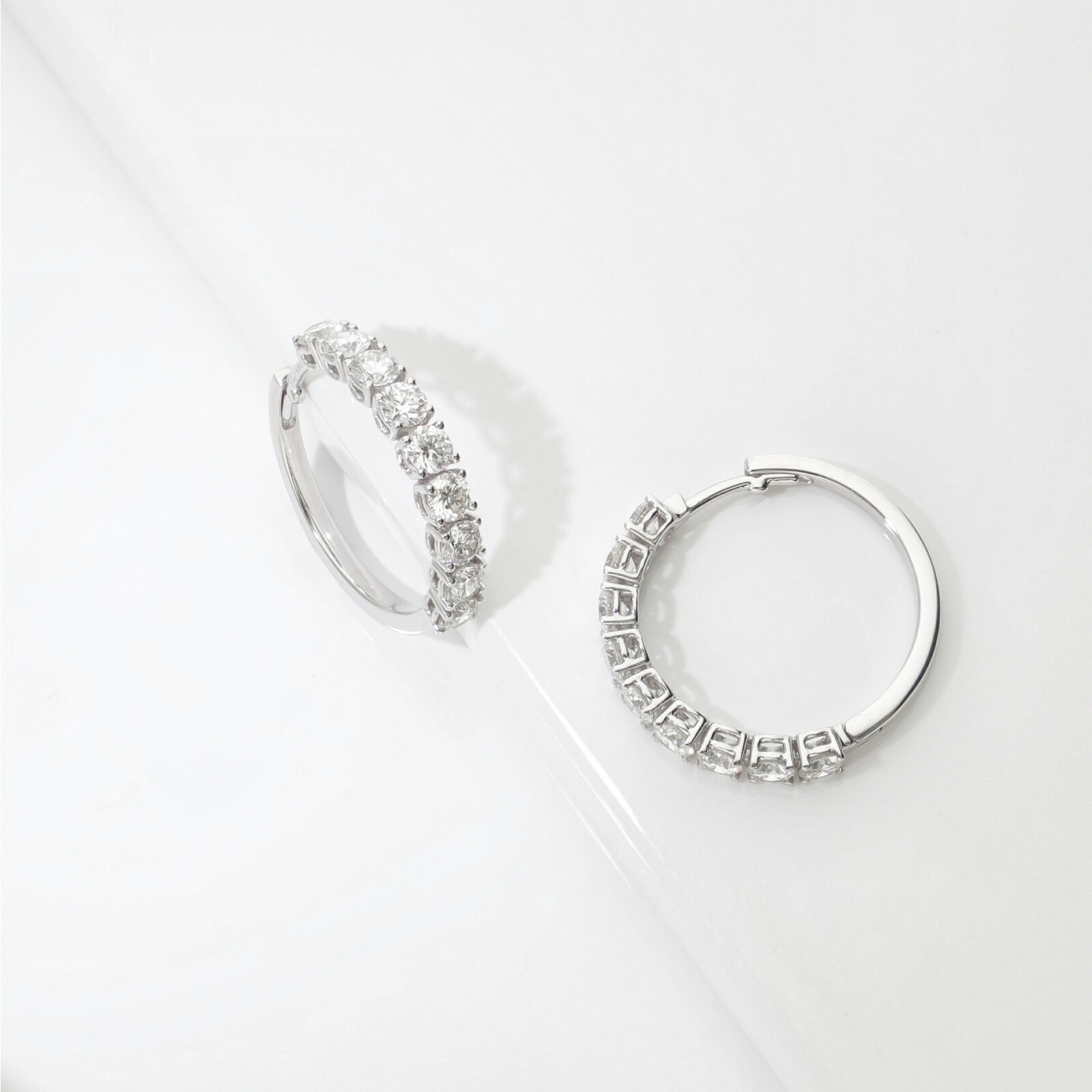 Diamond hoop earrings in white gold 750