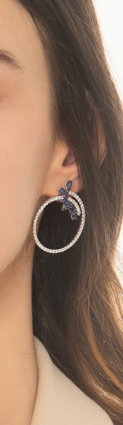 Hoop earrings in white gold 18k with blue sapphires and diamonds