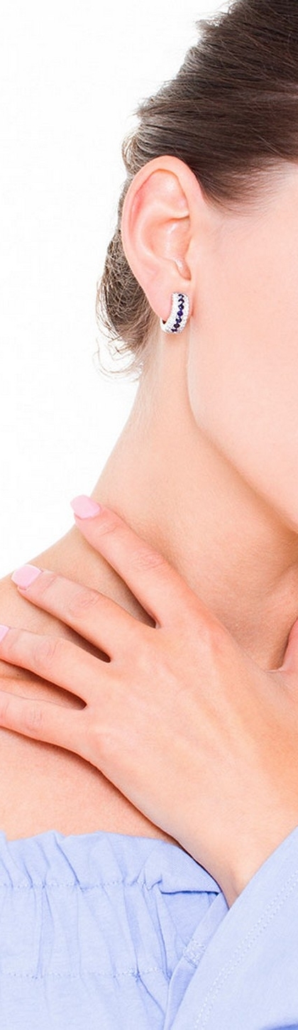 Hoop earrings with blue sapphires and diamonds in white gold 18k