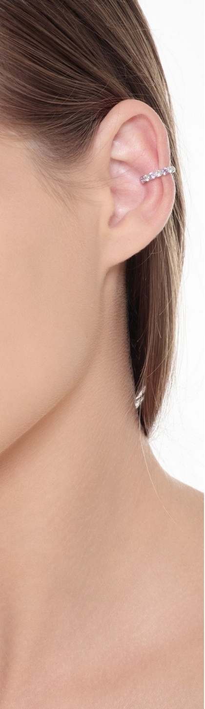 Single hoop earring in white gold 18k with pink sapphires and diamonds