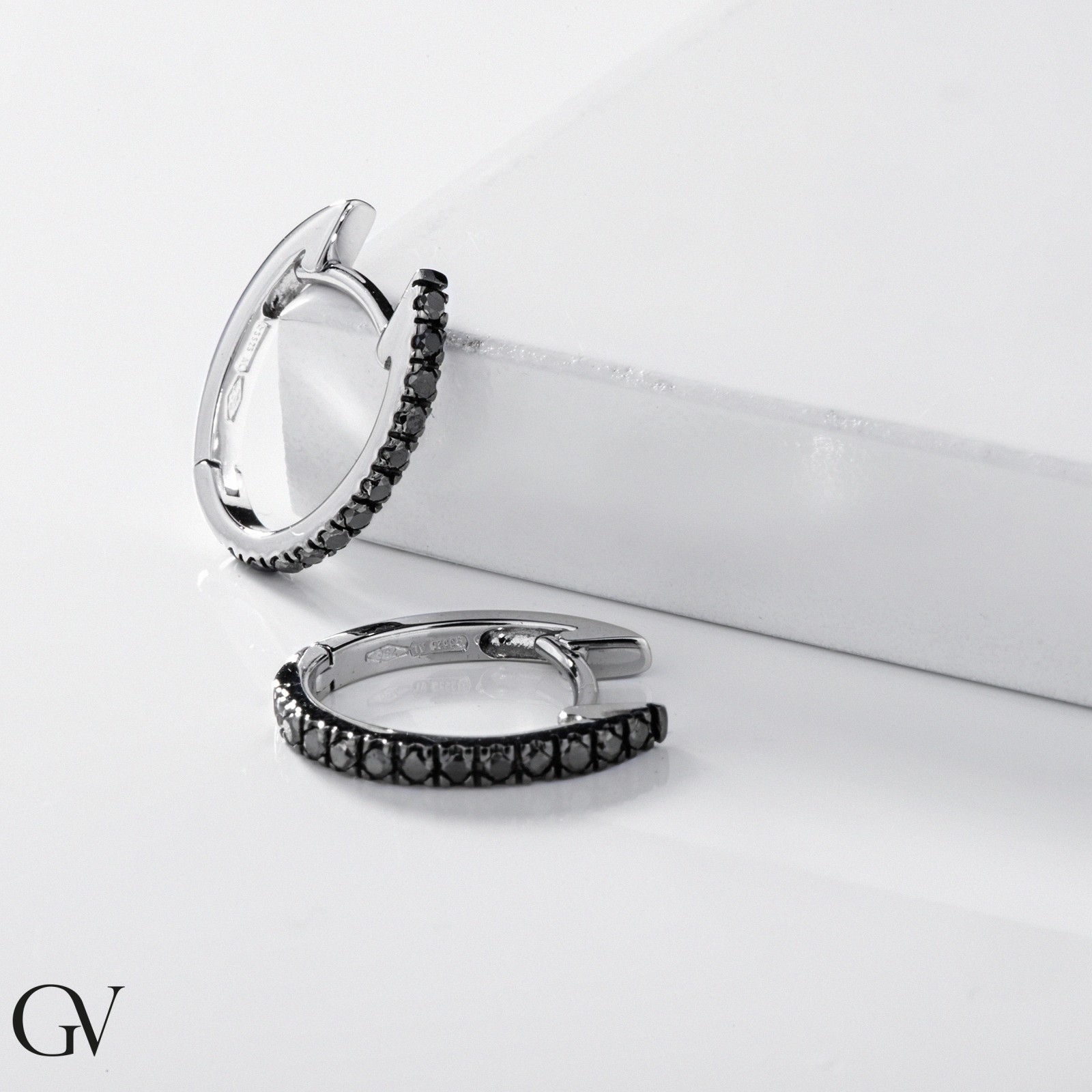 White gold 18k oval earrings with black diamonds, 0,20 ct