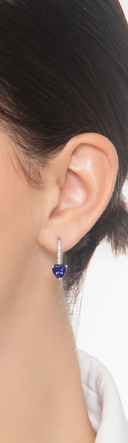 18k white gold earrings with blue sapphire and diamonds