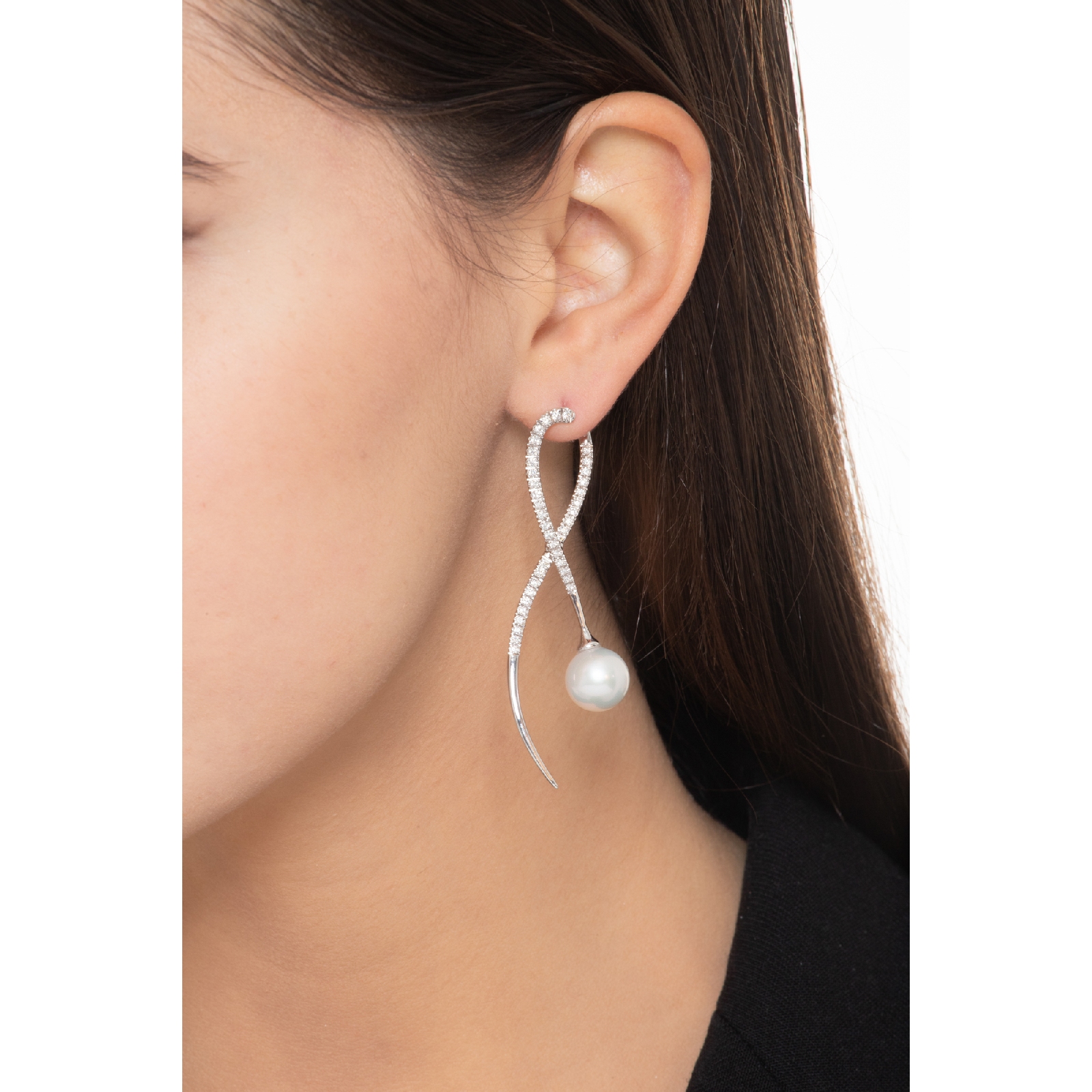 18k white gold fancy geometric earrings with pearls and diamonds