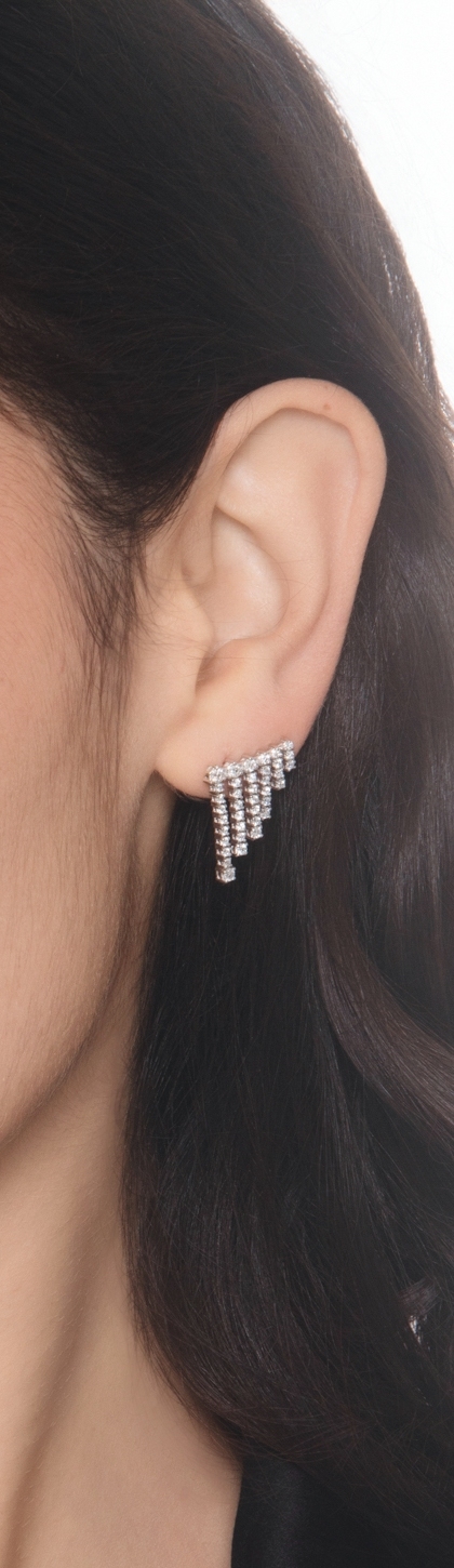 This model is crafted in 18kt white gold and it features 6 rows of dangling brilliant-cut white diamonds. All of them have H colour and VS clarity: the perfect balance between shine and quality.