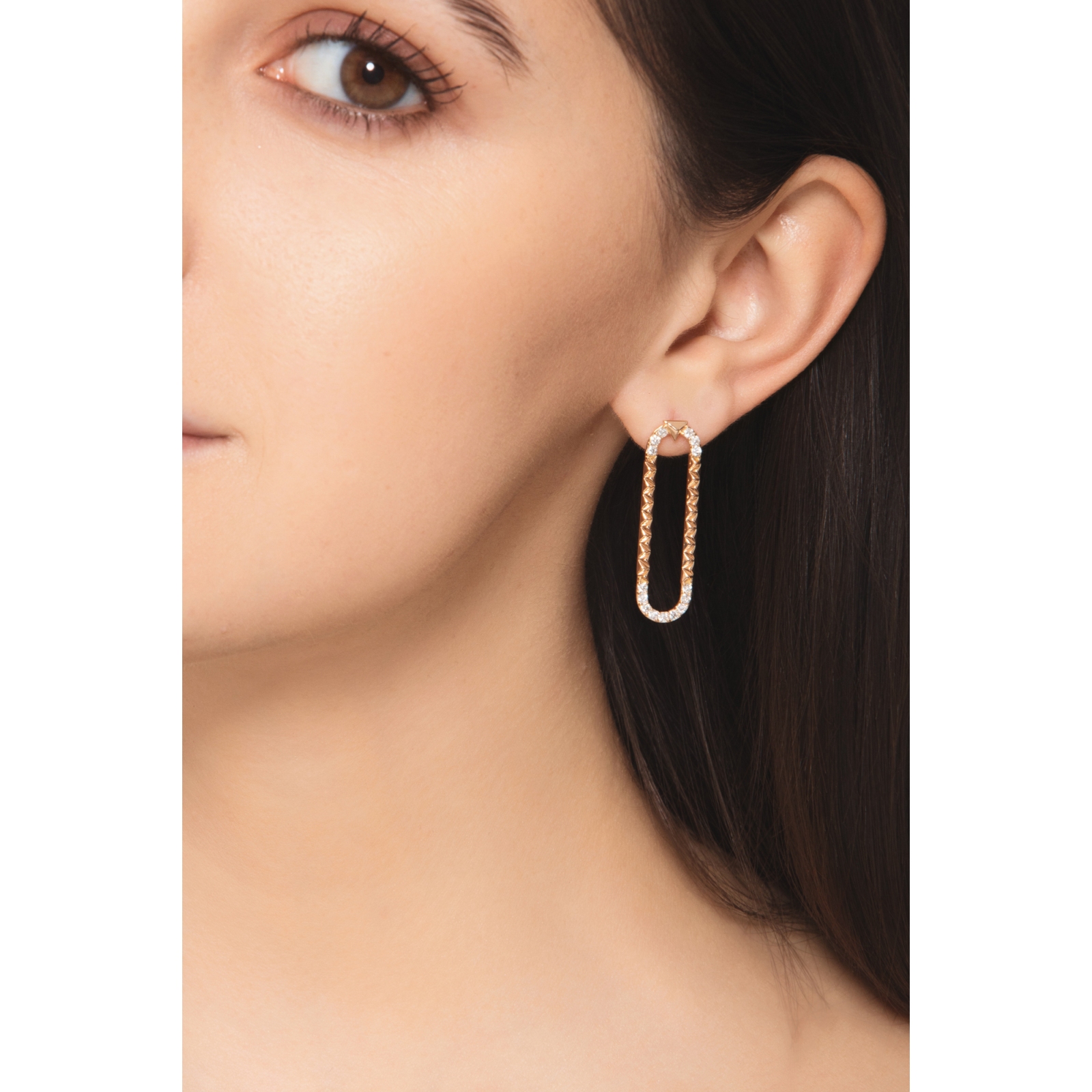 The geometric and contemporary lines of these oval earrings with white diamonds will elevate any outfit.