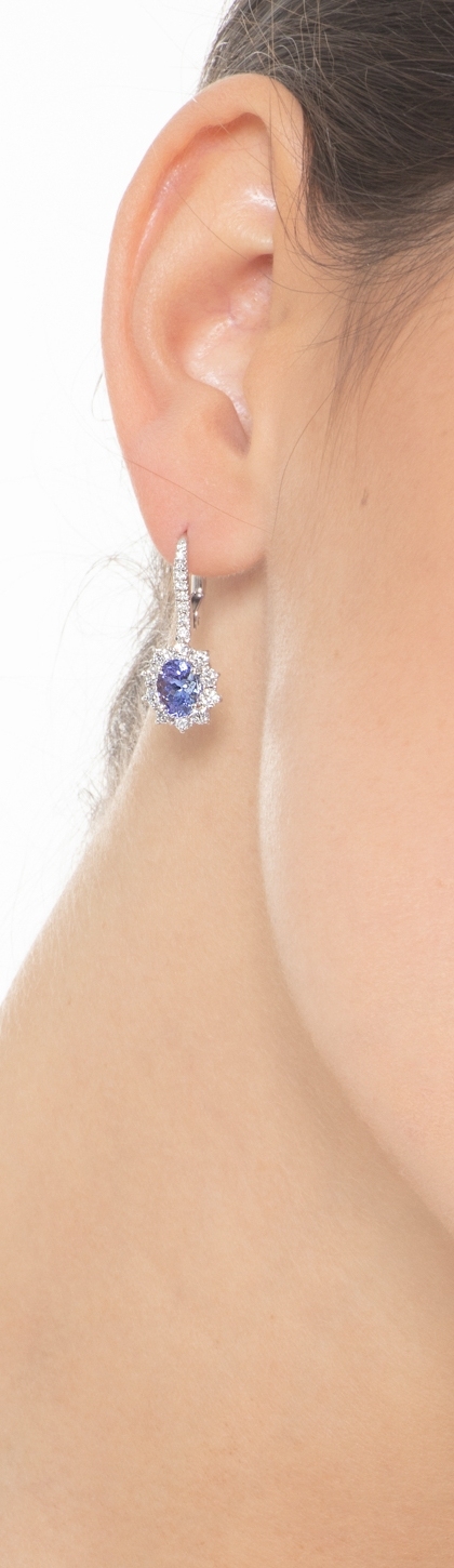 White gold 18k drop earrings with oval tanzanite and diamonds