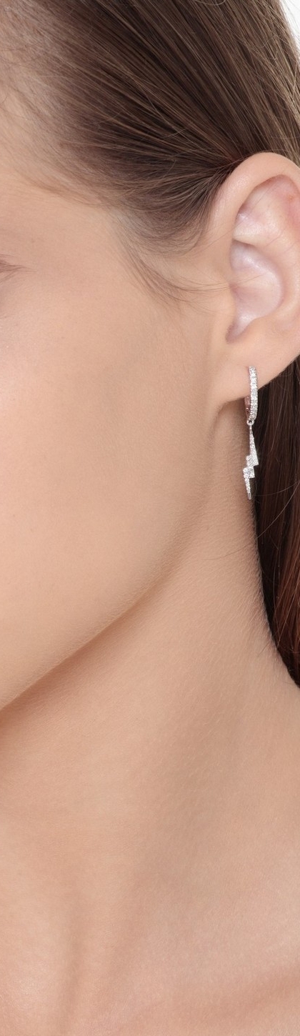 White gold 18k hoop earrings with diamond pendant lightning shaped