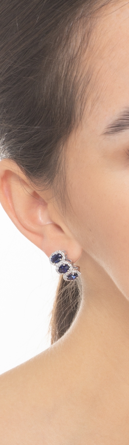 White gold 18k earrings with blue sapphires oval cut and diamonds
